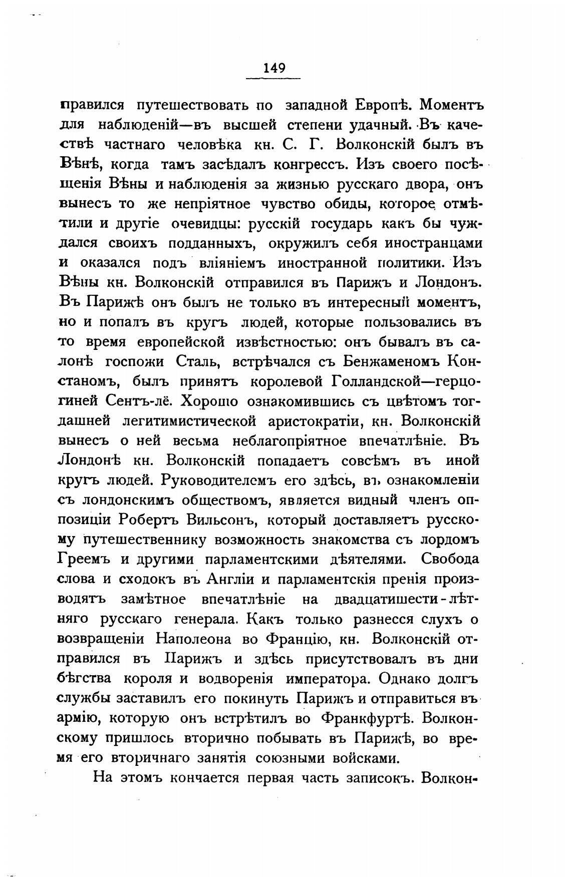 На этомъ кончается первая часть записокъ. Волкон-