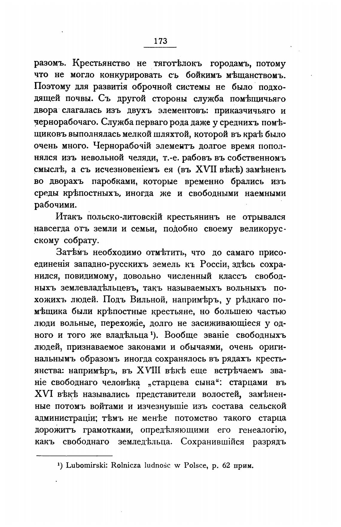 1) Lubomirski: Rolnicza ludnoSc w Polsce, р. 62 прим.