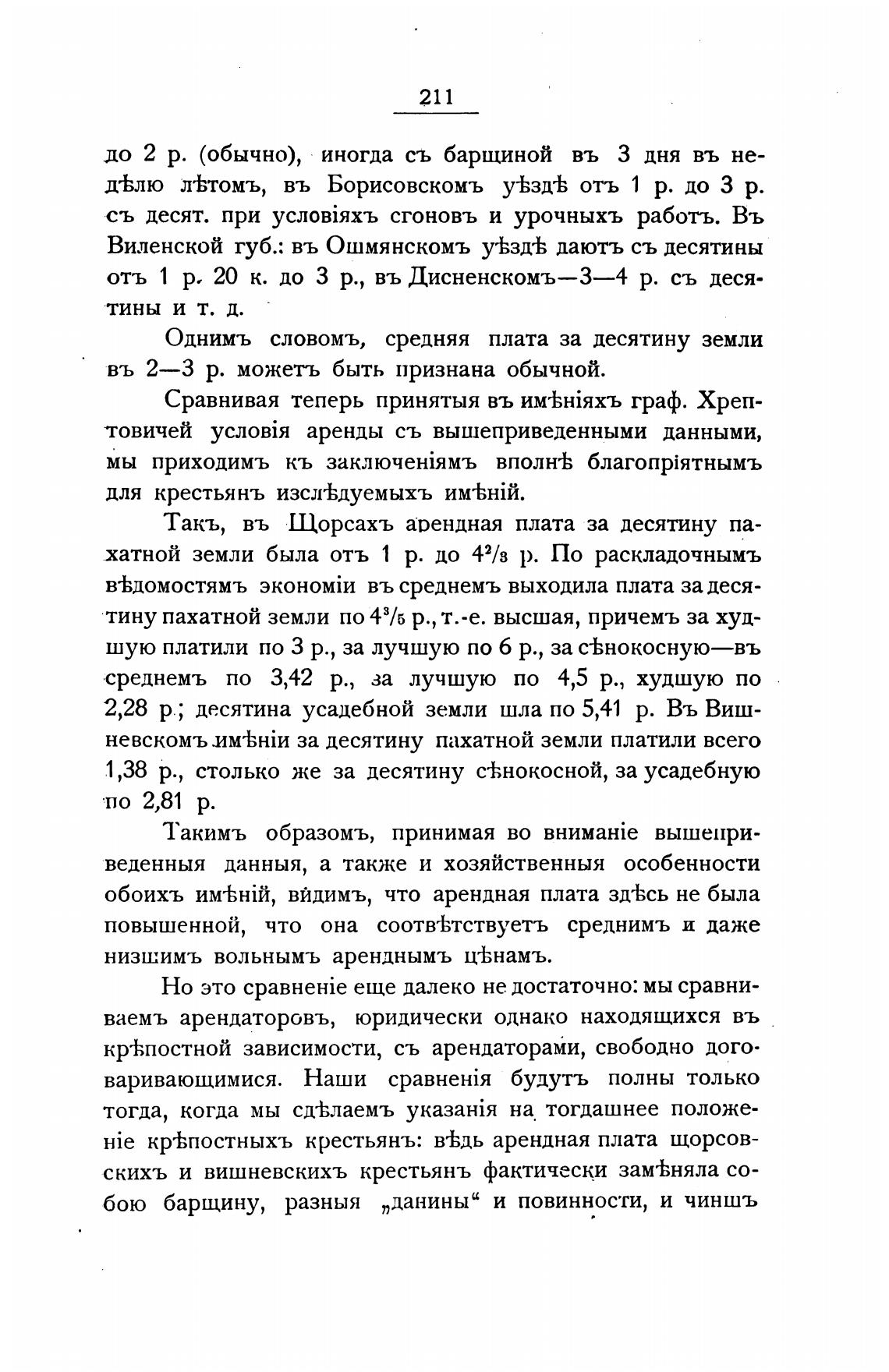 Такъ, въ Щорсахъ арендная плата за десятину па-