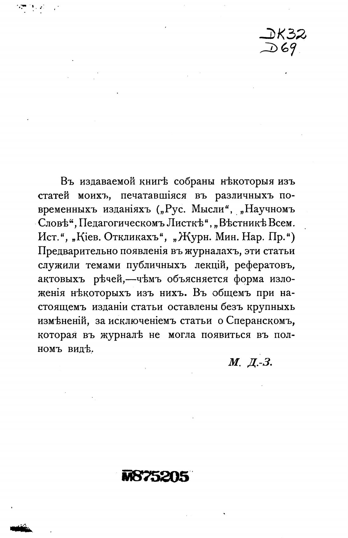 Предварительно въ журналахъ, эти статьи
