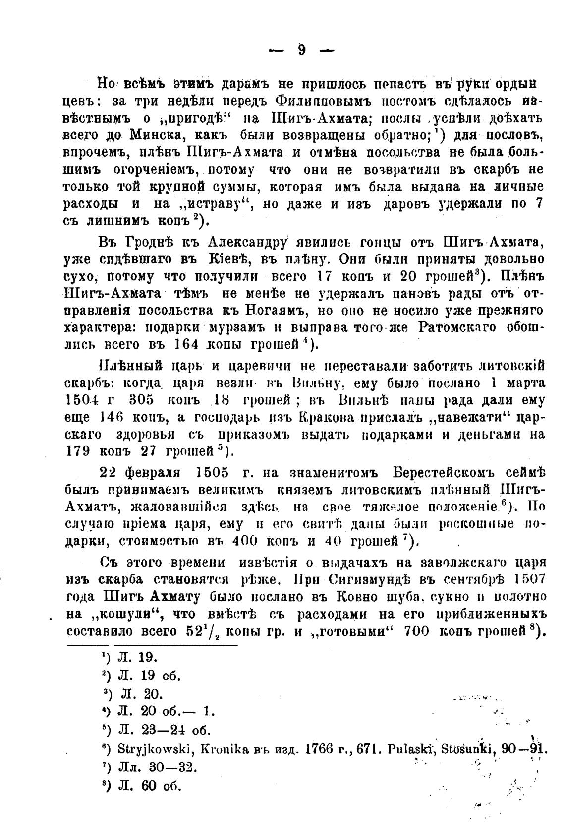 года Шигъ Ахмату было послано въ Ковно шуба, сукно и волотно