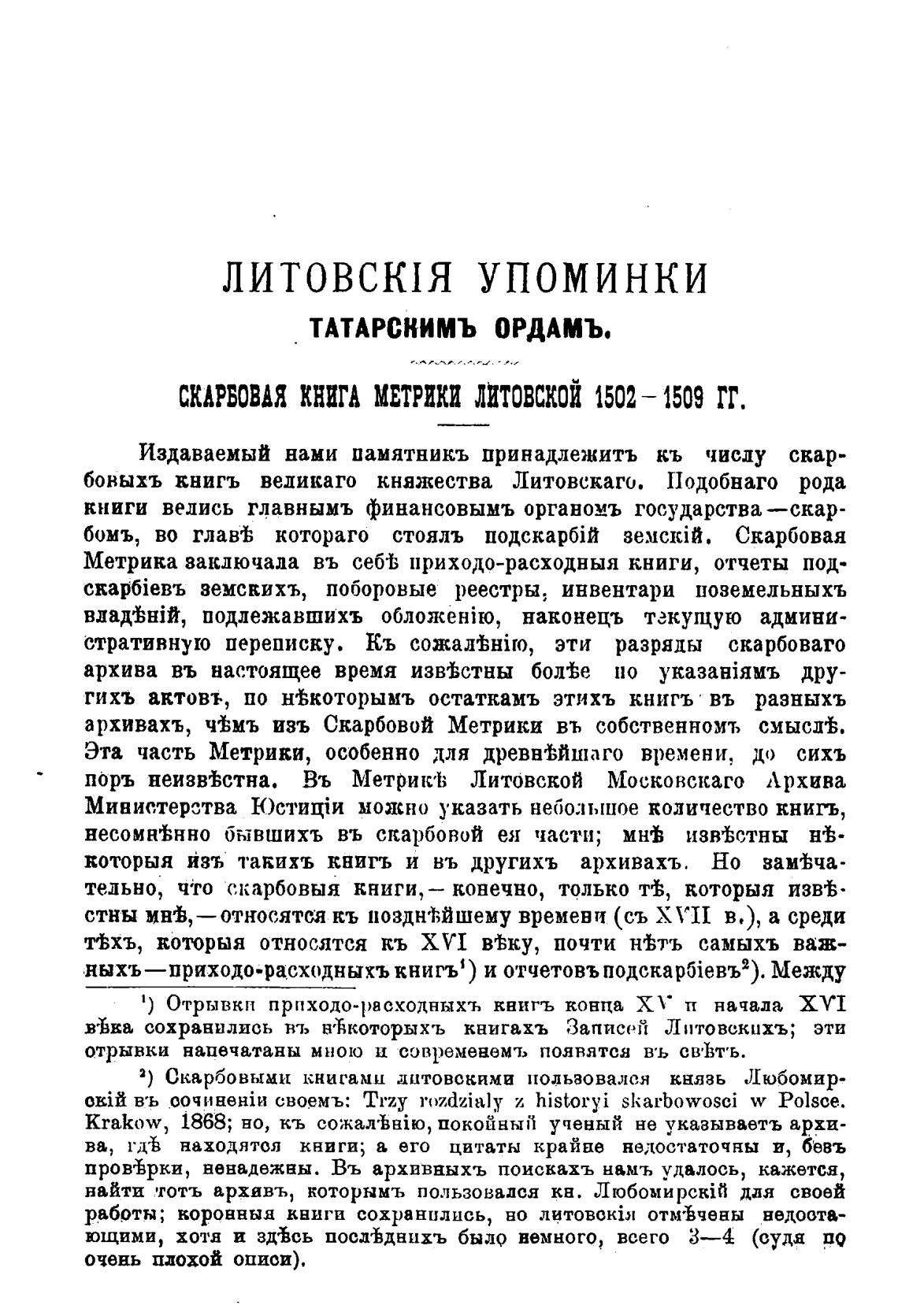архивахъ, ч±мъ изъ Скарбовой Метрики въ собственномъ смысд±.