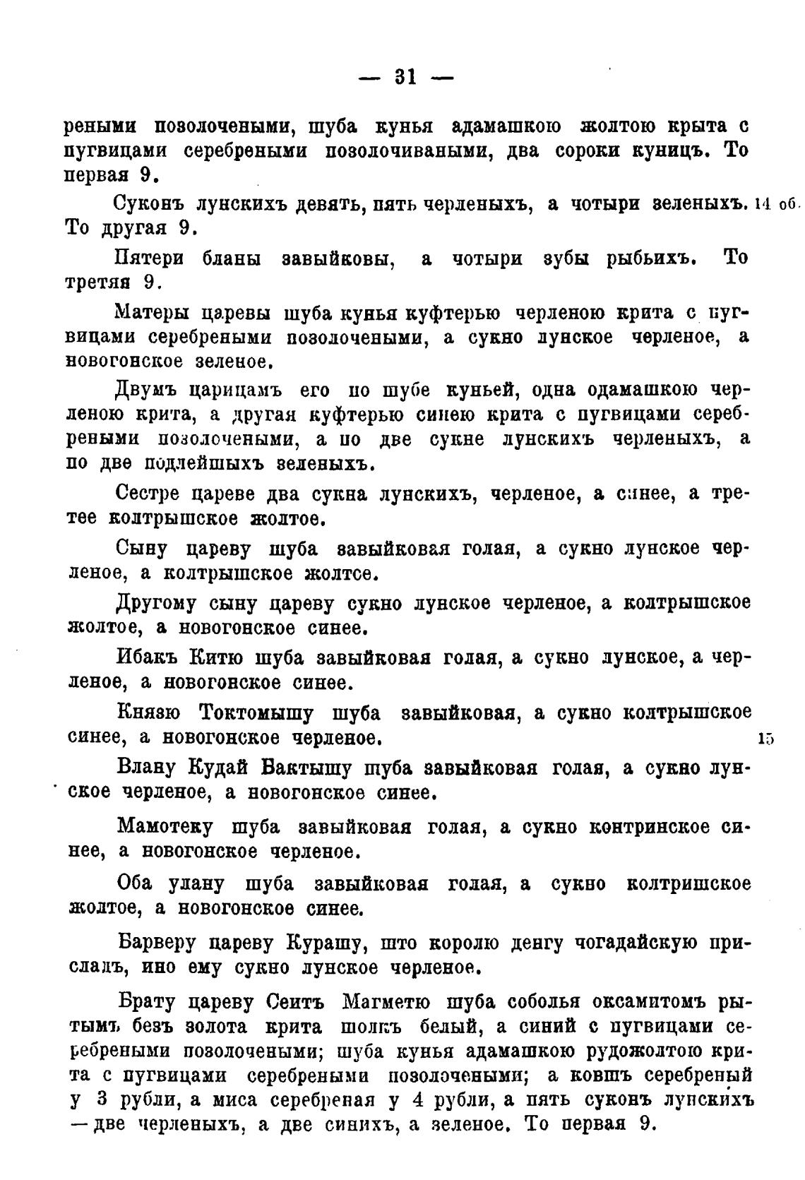 Суконъ лунскихъ девять, пять черденыхъ, а чотыри веленыхъ. 14 об