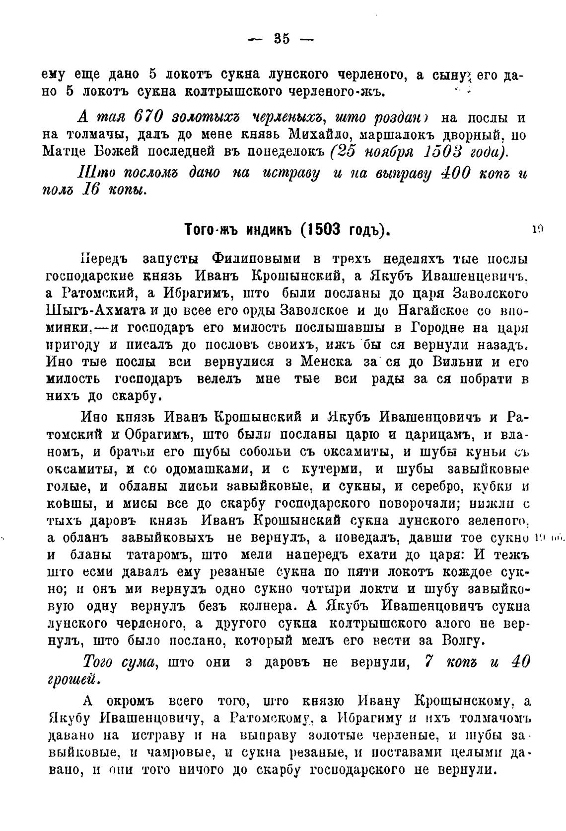 господарские князь Ивань Крошынск.ий, а Якубъ Ивашенцевичъ-