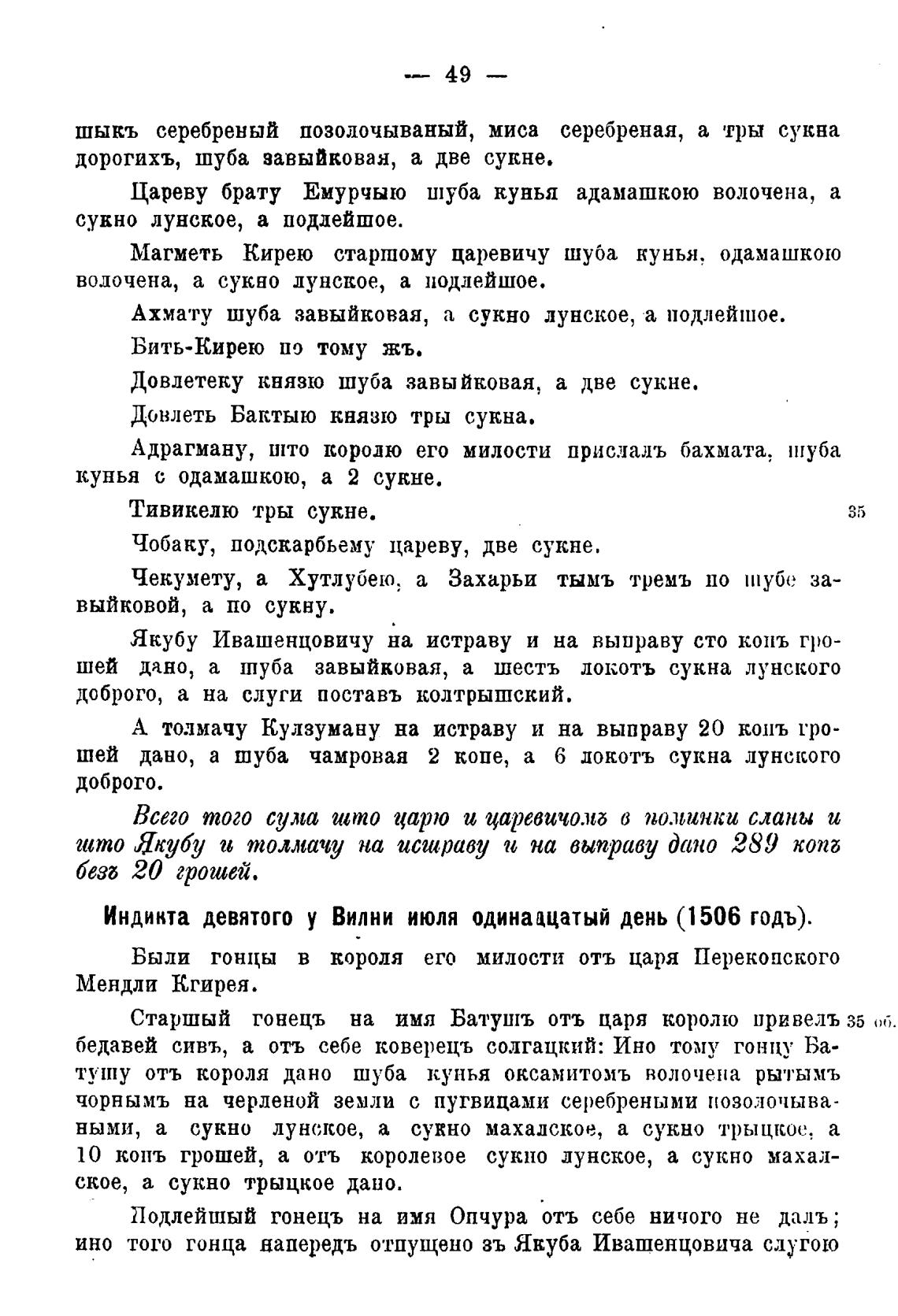 Индикта девятого у Вилни июля одинащатый день (1506 годъ).