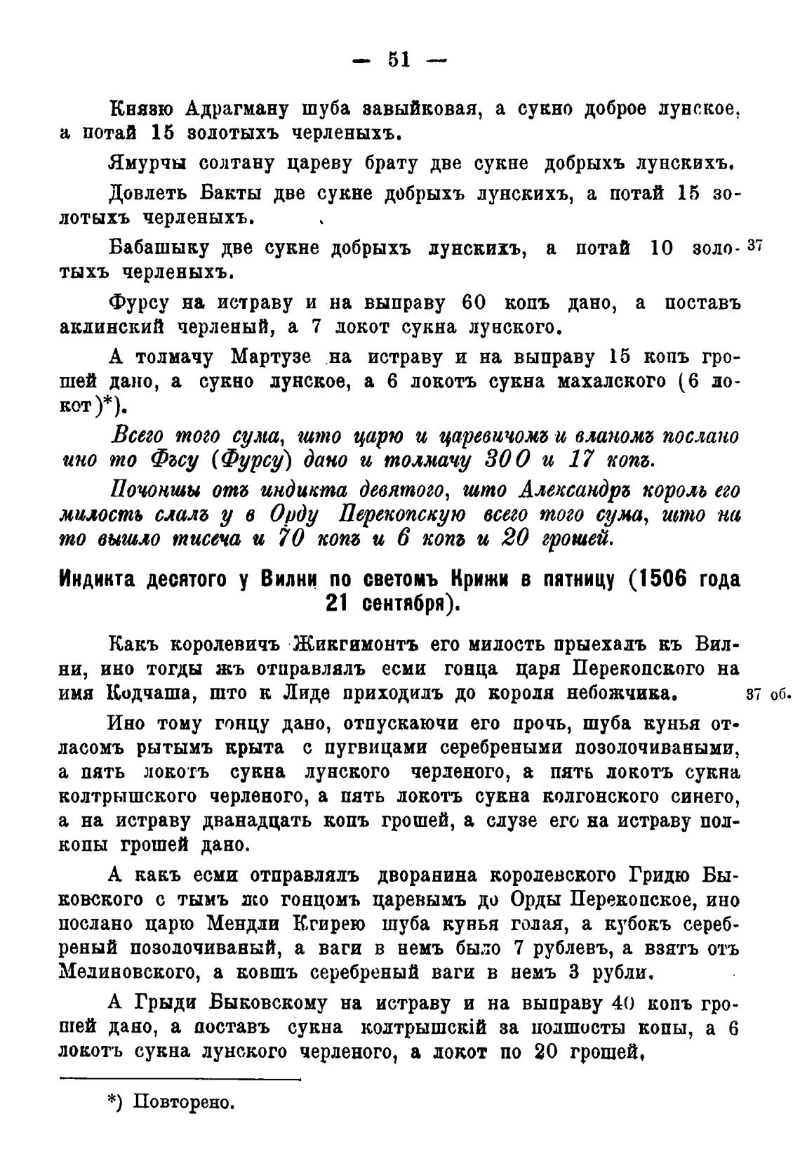 Индикта десятого у Вилни по светомъ Крижи в пятницу (1506 года