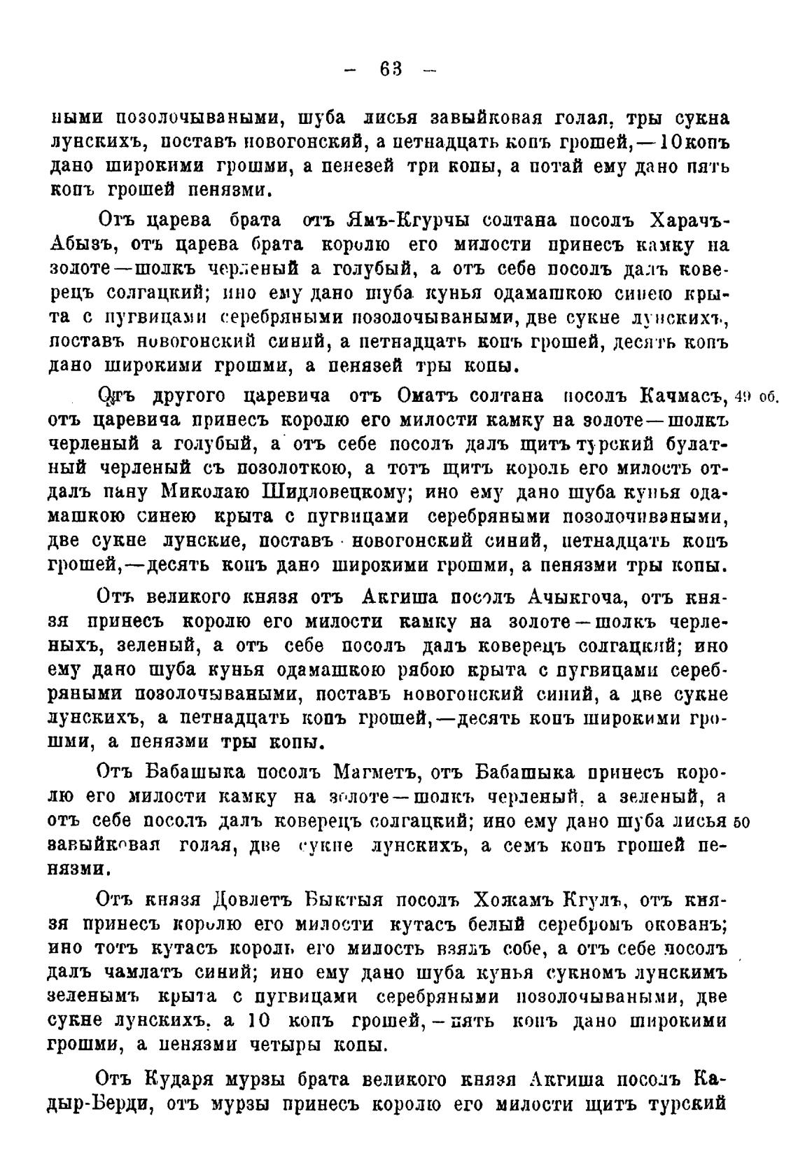 другого царевича отъ Оматъ солтана посодъ Качмасъ, 49 об.