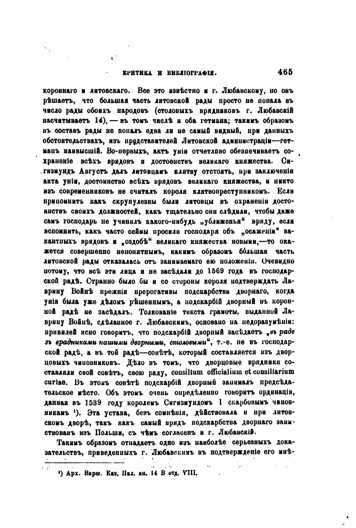 1) Арх. Варш. Каа. кн. В отд. YIII.