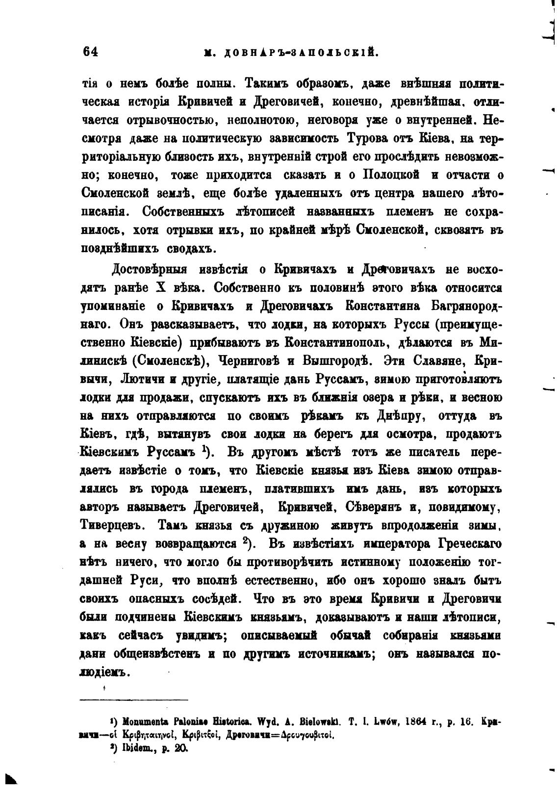 ynouaHbHie о Кривичахъ и Дреговичахъ Константина Багрянород-