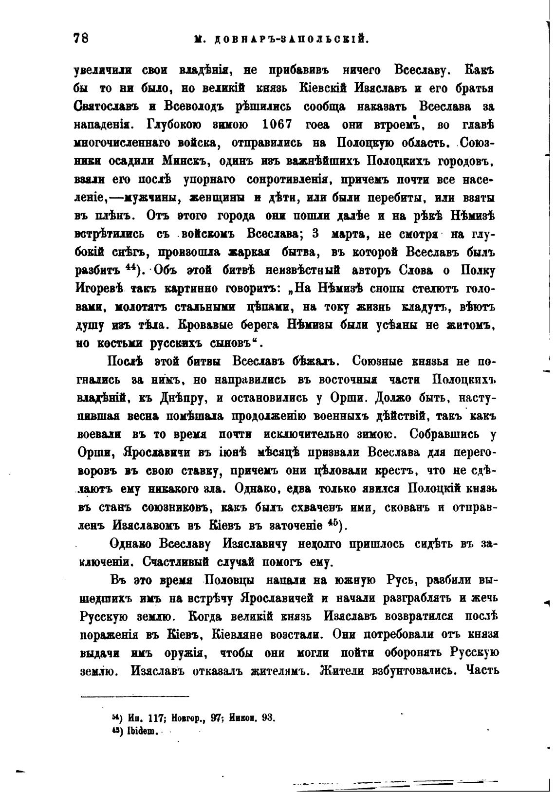 Поив этой битвы Всеславъ 6'Ьжа.иъ. Союзные князья не по-