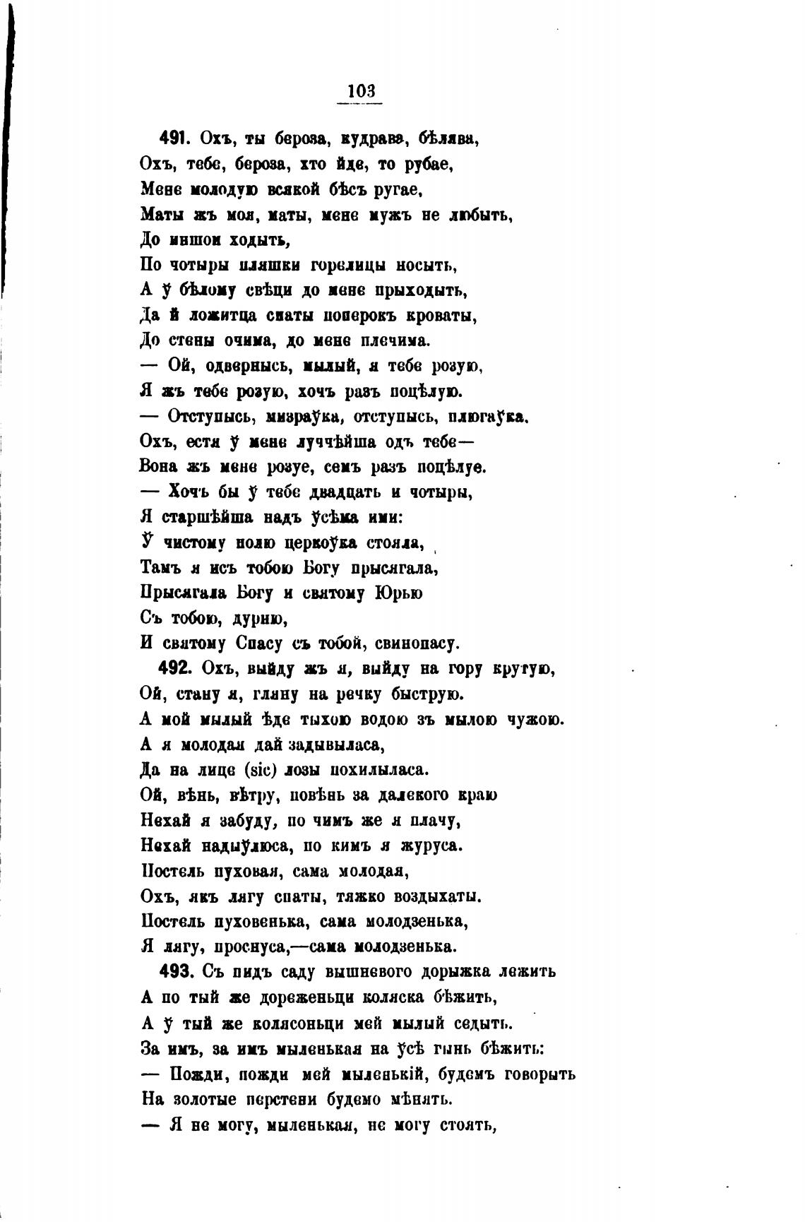 493. Съ пидъ щцу вышневого дорыжка лежить