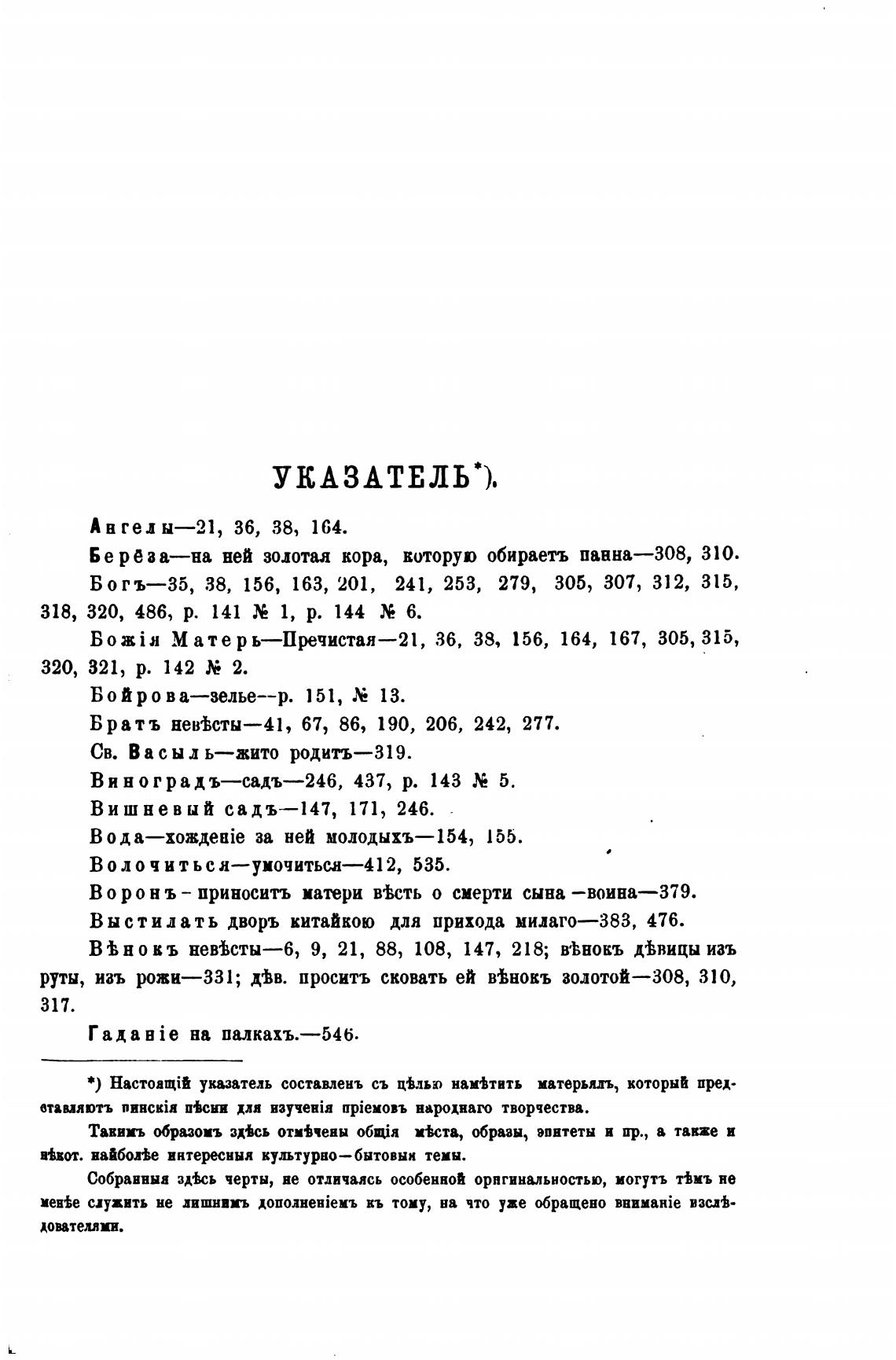 *) указатель составлень съ ц±лью нам±тить матерьял, который пред.