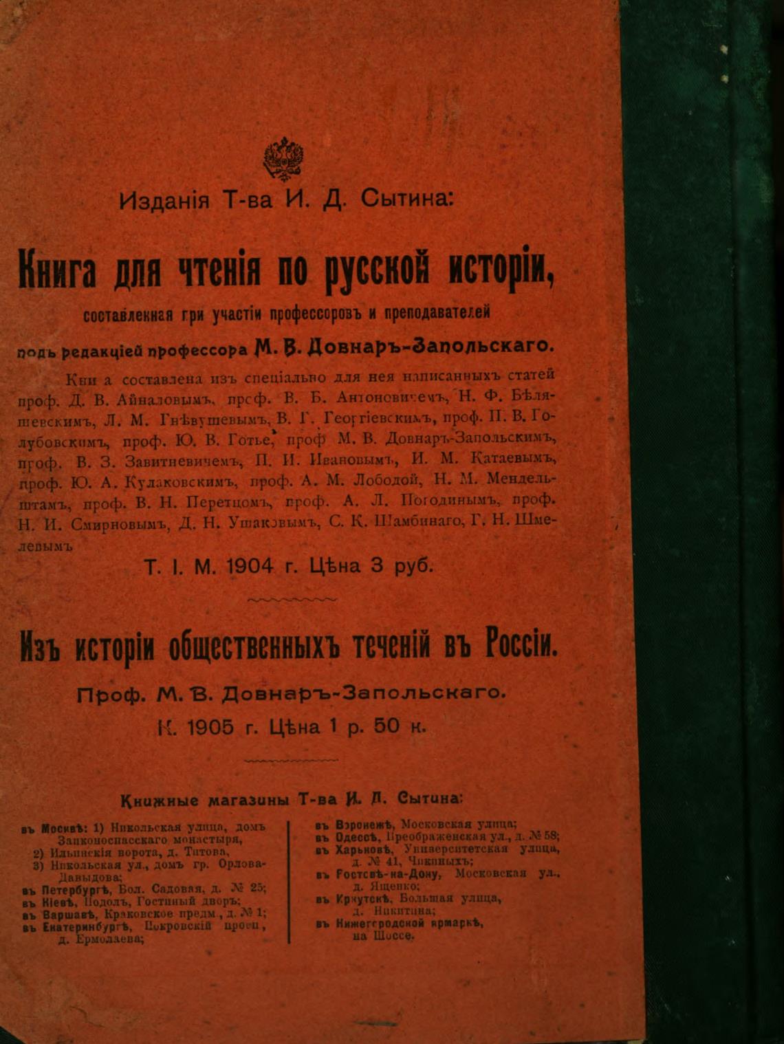 подь редам$ей профессора М. В. Довнаръ-ааподьскаго.