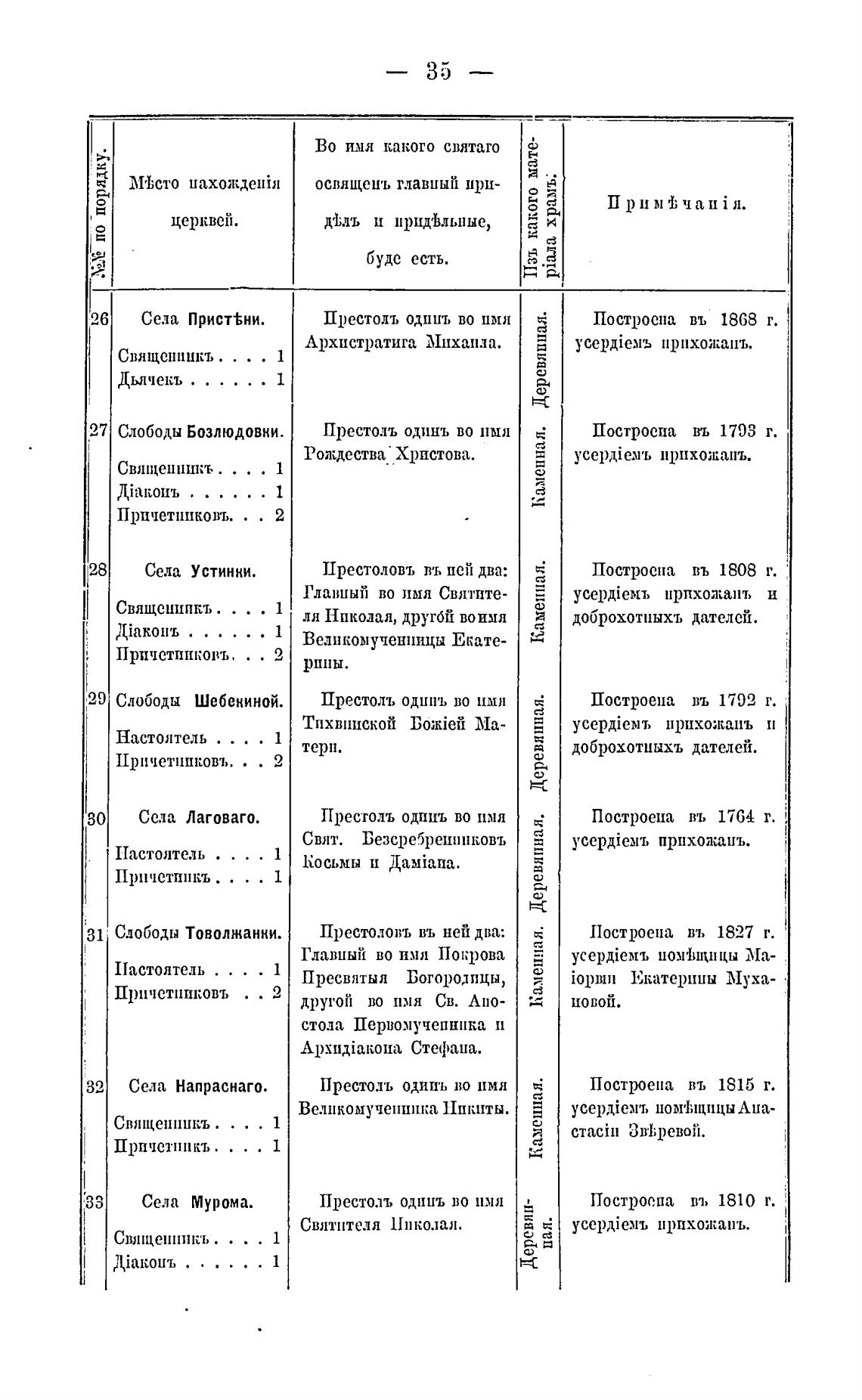 31 Слободы Товолжанни. Престоловъ въ ней два: