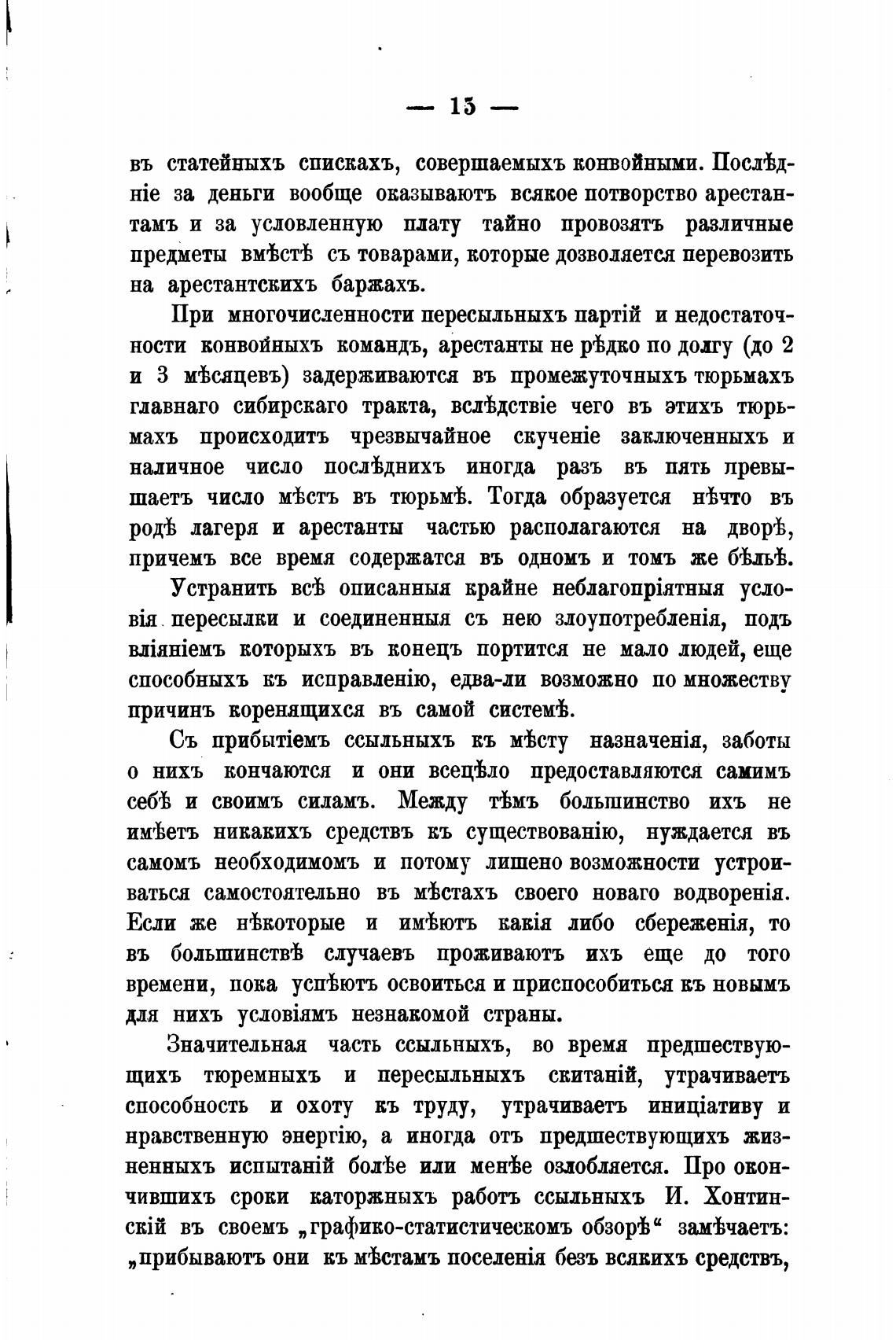 чившихъ сроки каторжныхъ работъ ссыльныхъ И. Хонтин-