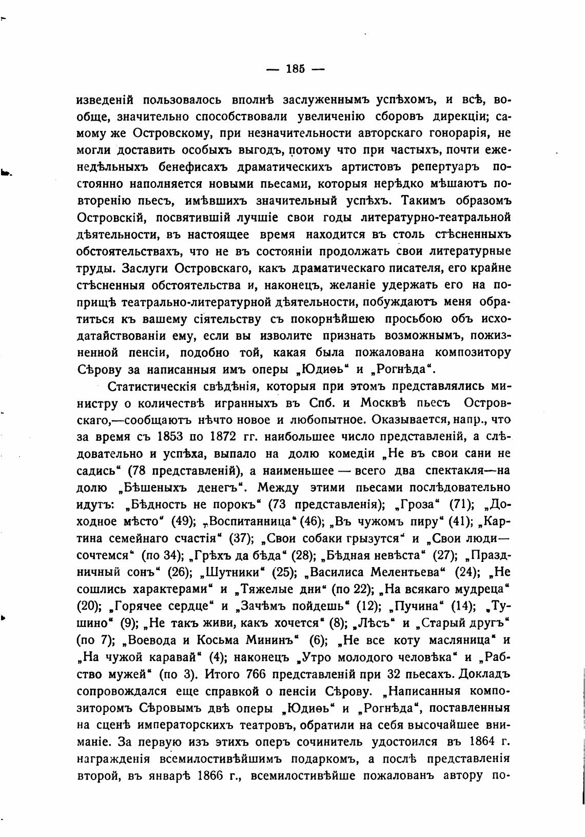 нистру о количеств•Ь игранныхъ въ СПб. и Москв•Ь пьесъ Остров-