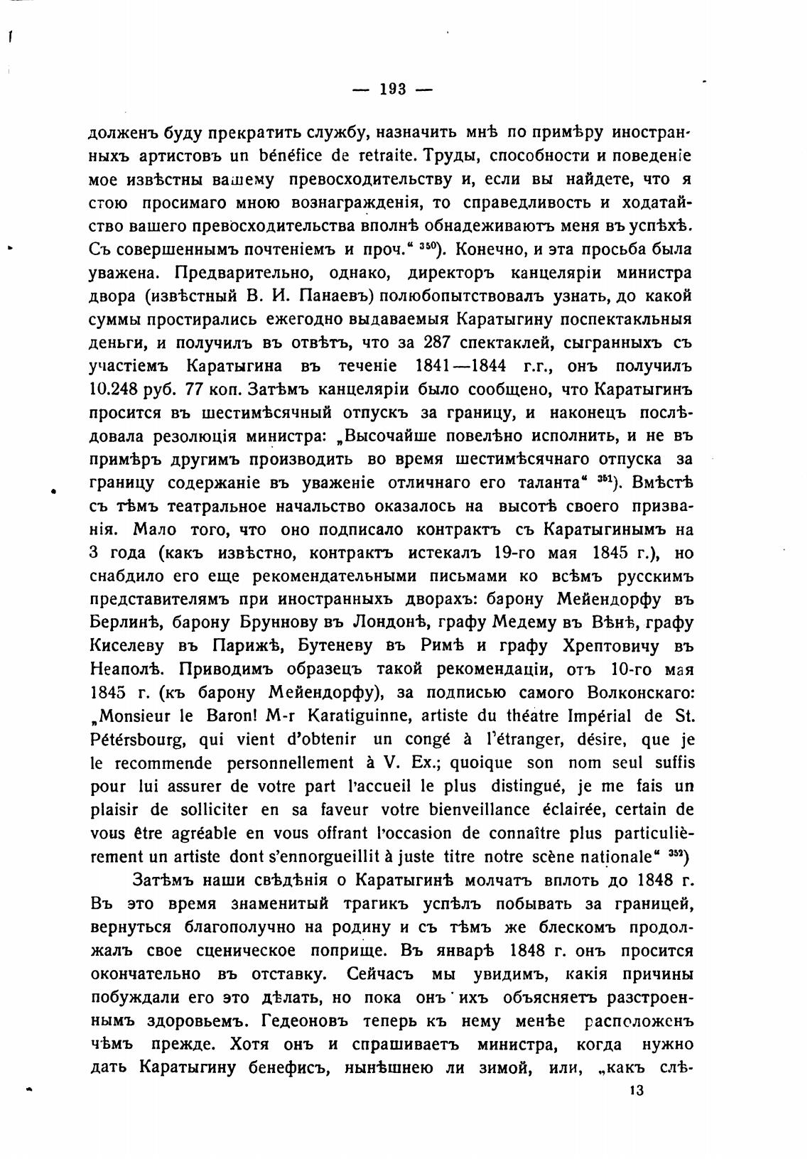 „Monsieur le Ватоп! M-r karatiguinne, artiste du th€atre lmp€rial de St.