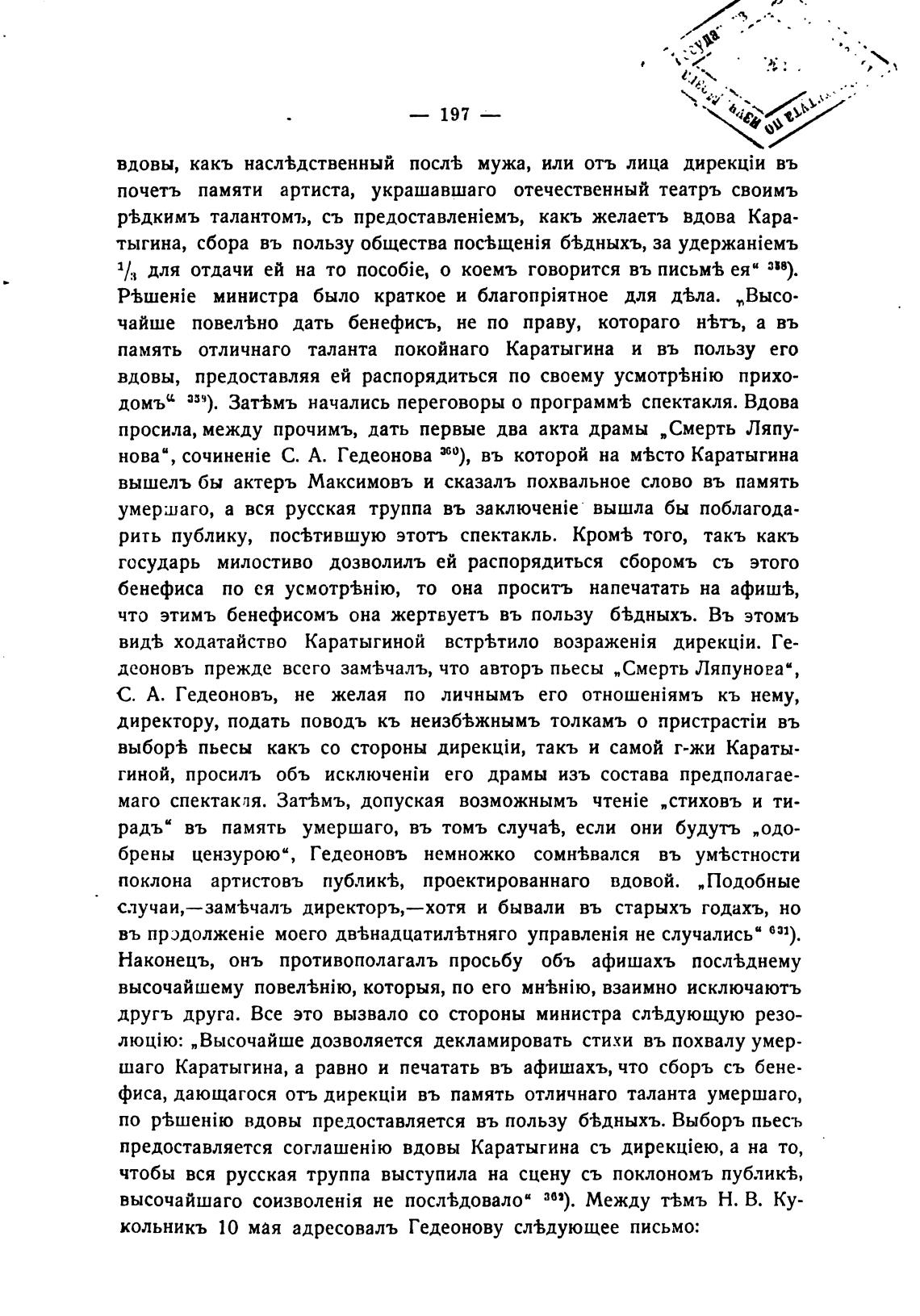 кольникъ 10 мая адресоваль Гедеонову сл%дующее письмо: