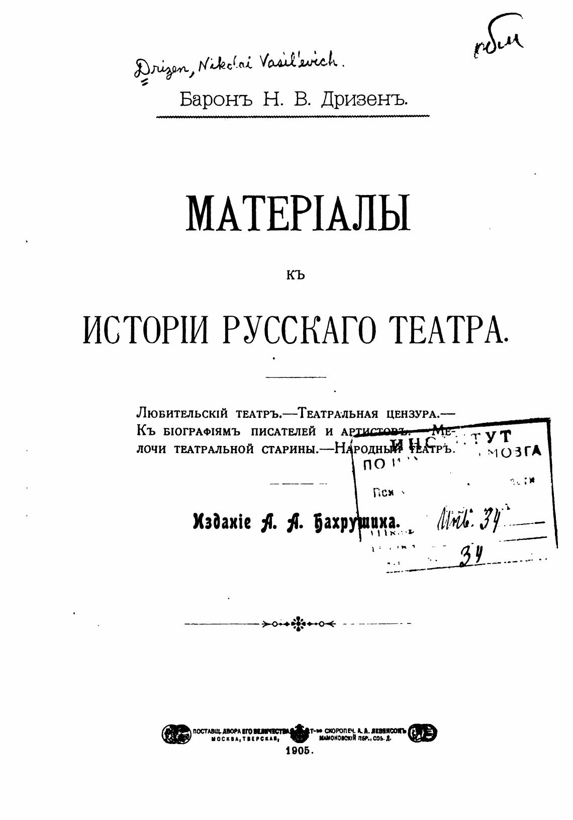 ИСТОМИ РУССКАГО ТЕАТРА.