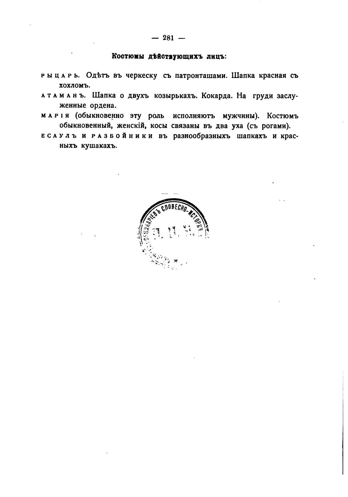 Костюмы диствующихъ лицъ:
