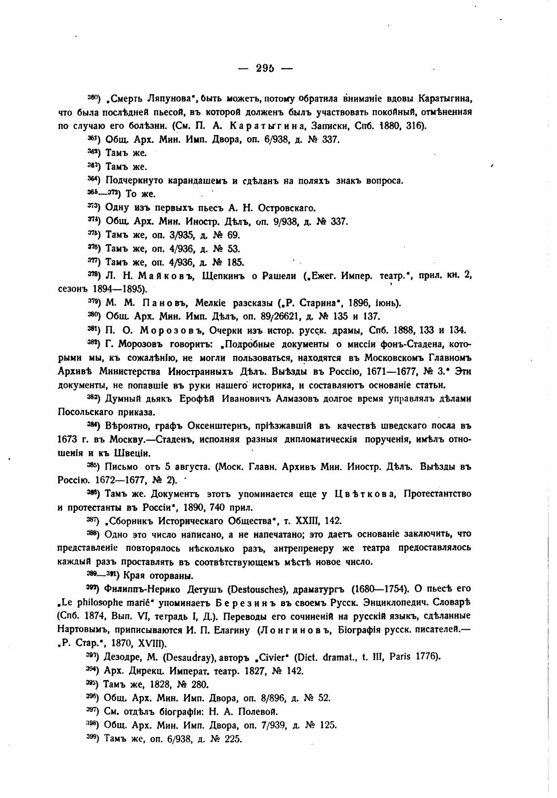381) П. О. Морозо в ъ. Очерки изъ истор. русдк. драмы, СПб. 1888, 133 и 134.