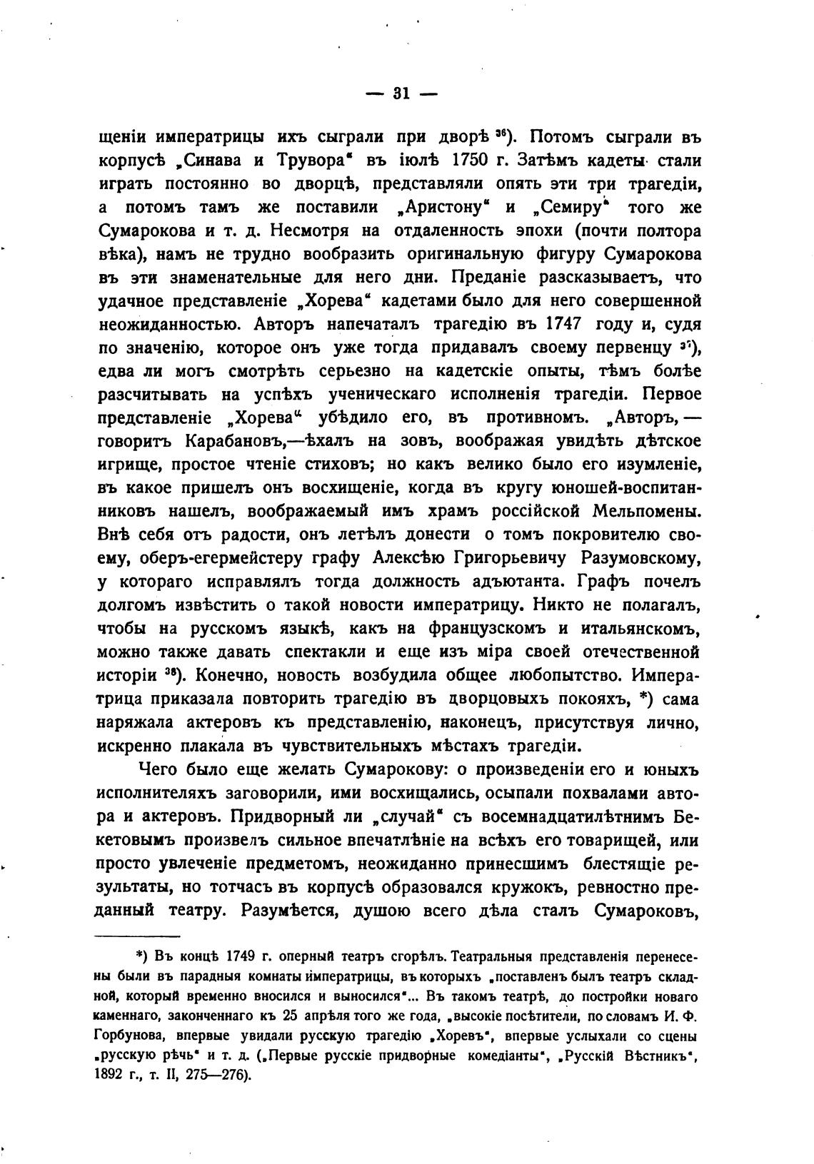данный театру. Разум%ется, душою всего д%ла сталь Сумароковъ,
