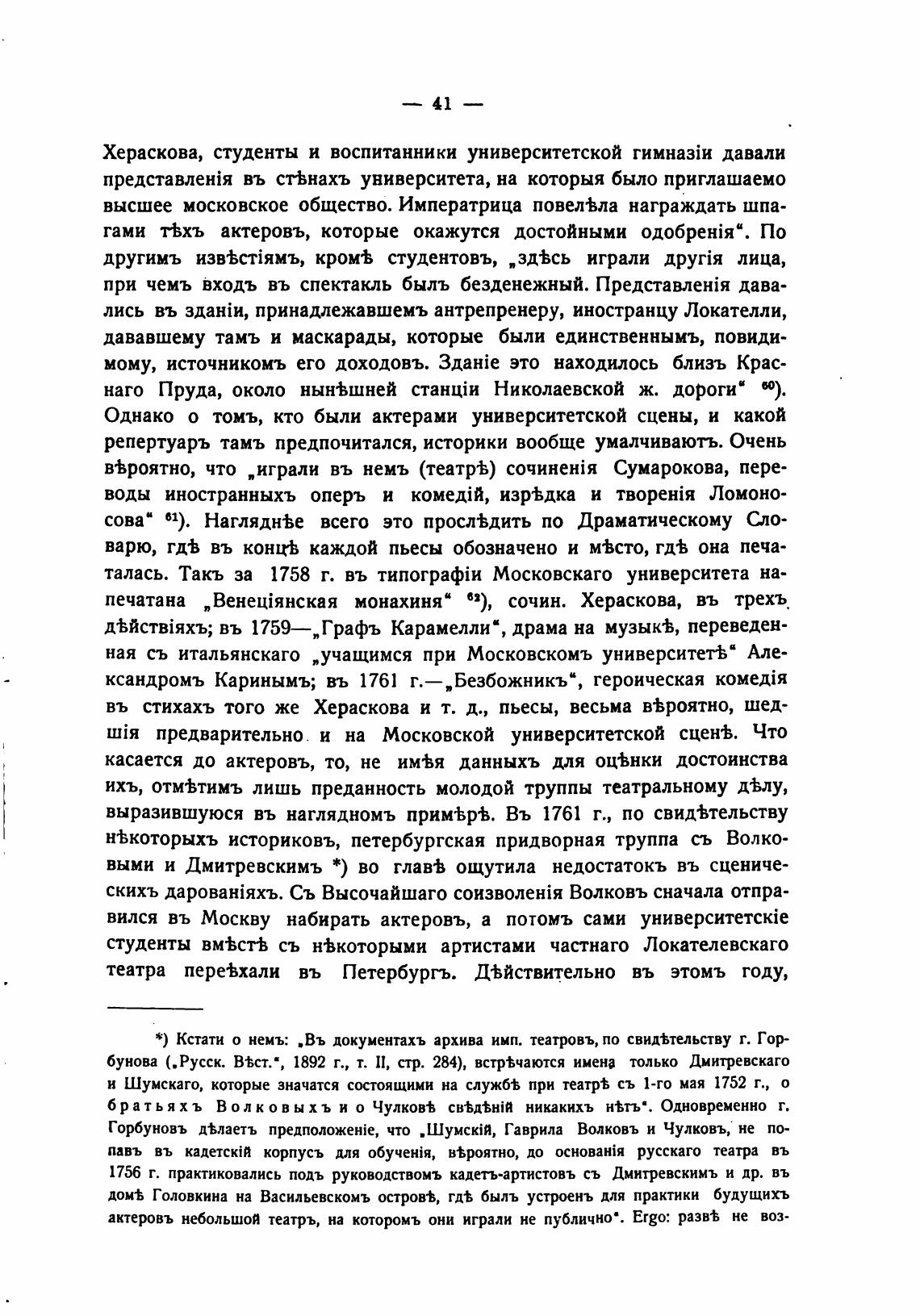 н%которыхъ историковъ, петербургская придворная труппа съ Волко-