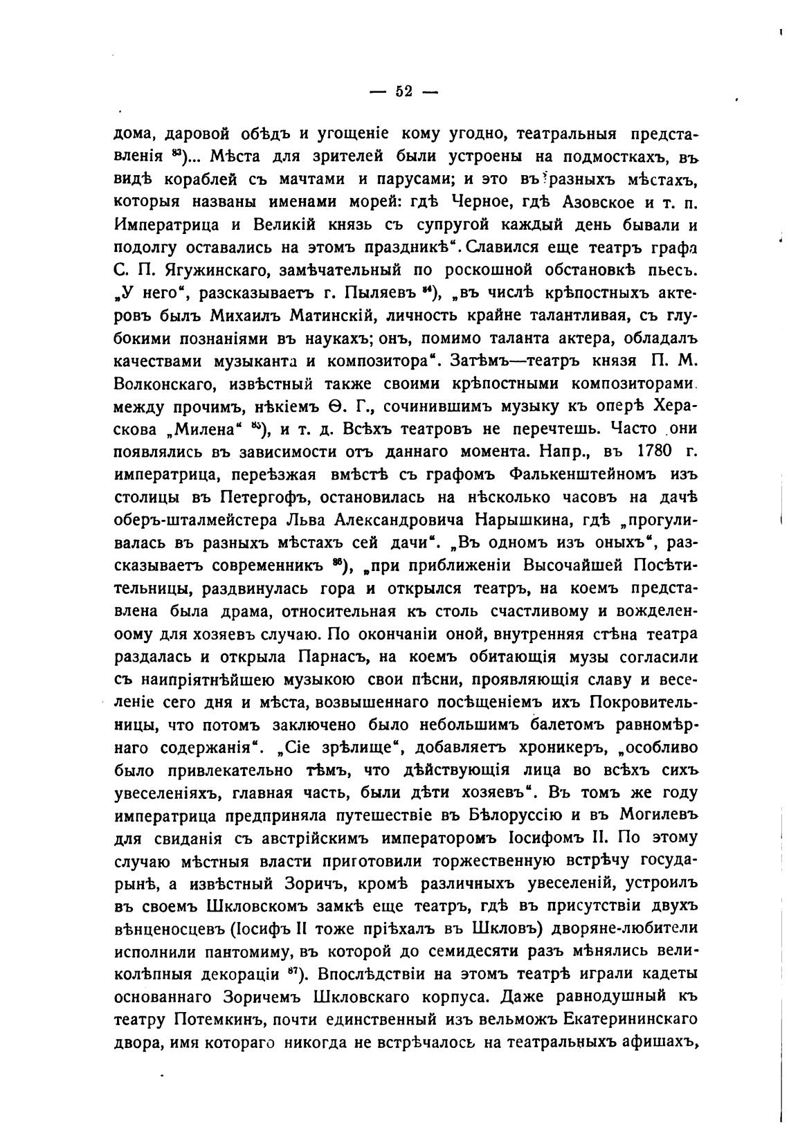 въ своемъ Шкловскомъ замк% еще театръ, гд•Ь въ присутствЈи двухъ
