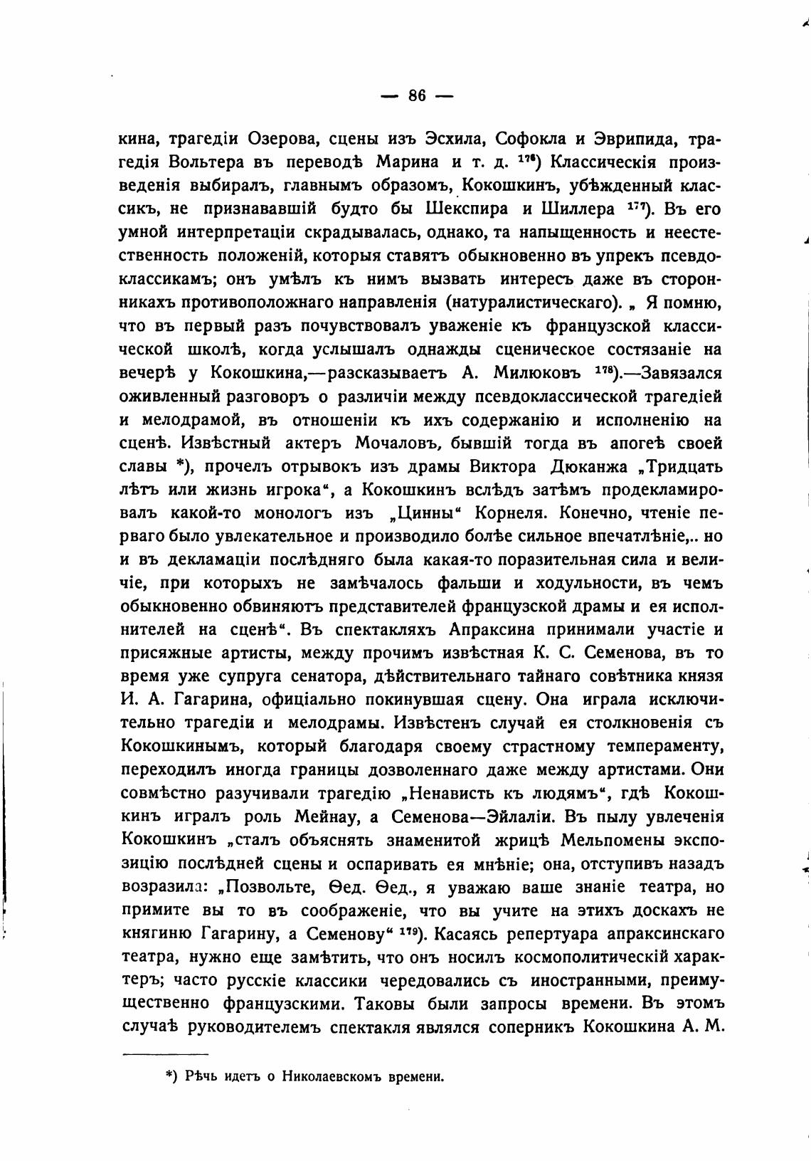 княгиню Гагарину, а Семенову“ 119). Касаясь репертуара апраксинскаго