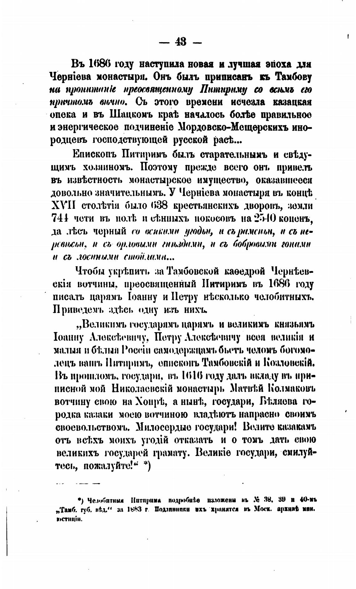 Cki:I вотчины. преосв:пценйый Питиримъ въ 1686 году