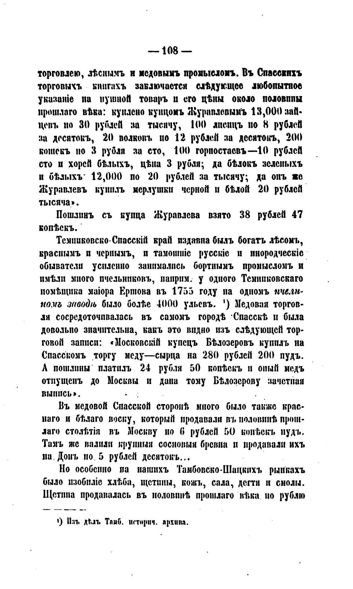 Спасскомъ торгу меду—сырца на 28() рублей 200 пудъ.
