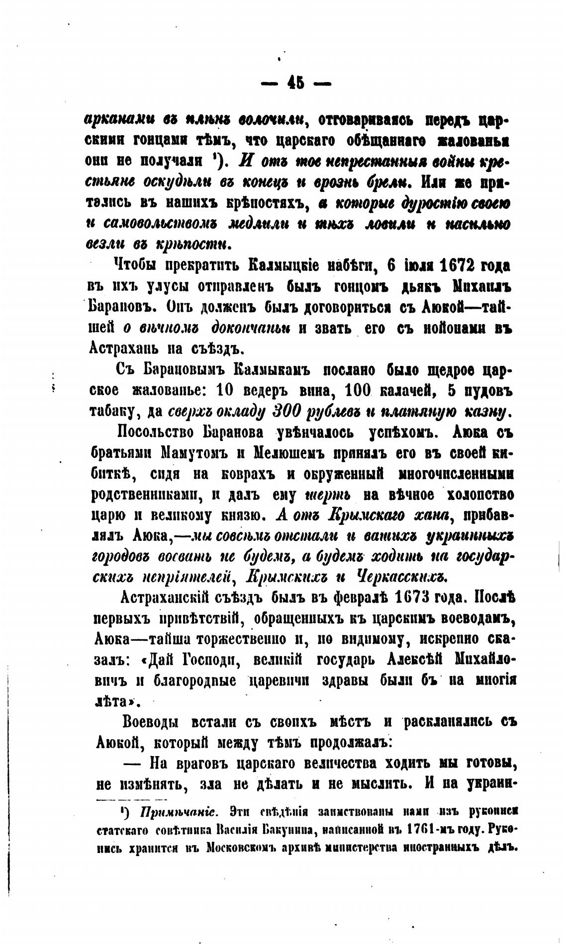 Съ Бараиовымъ Казмыкаиъ послано быио щедрое цар-