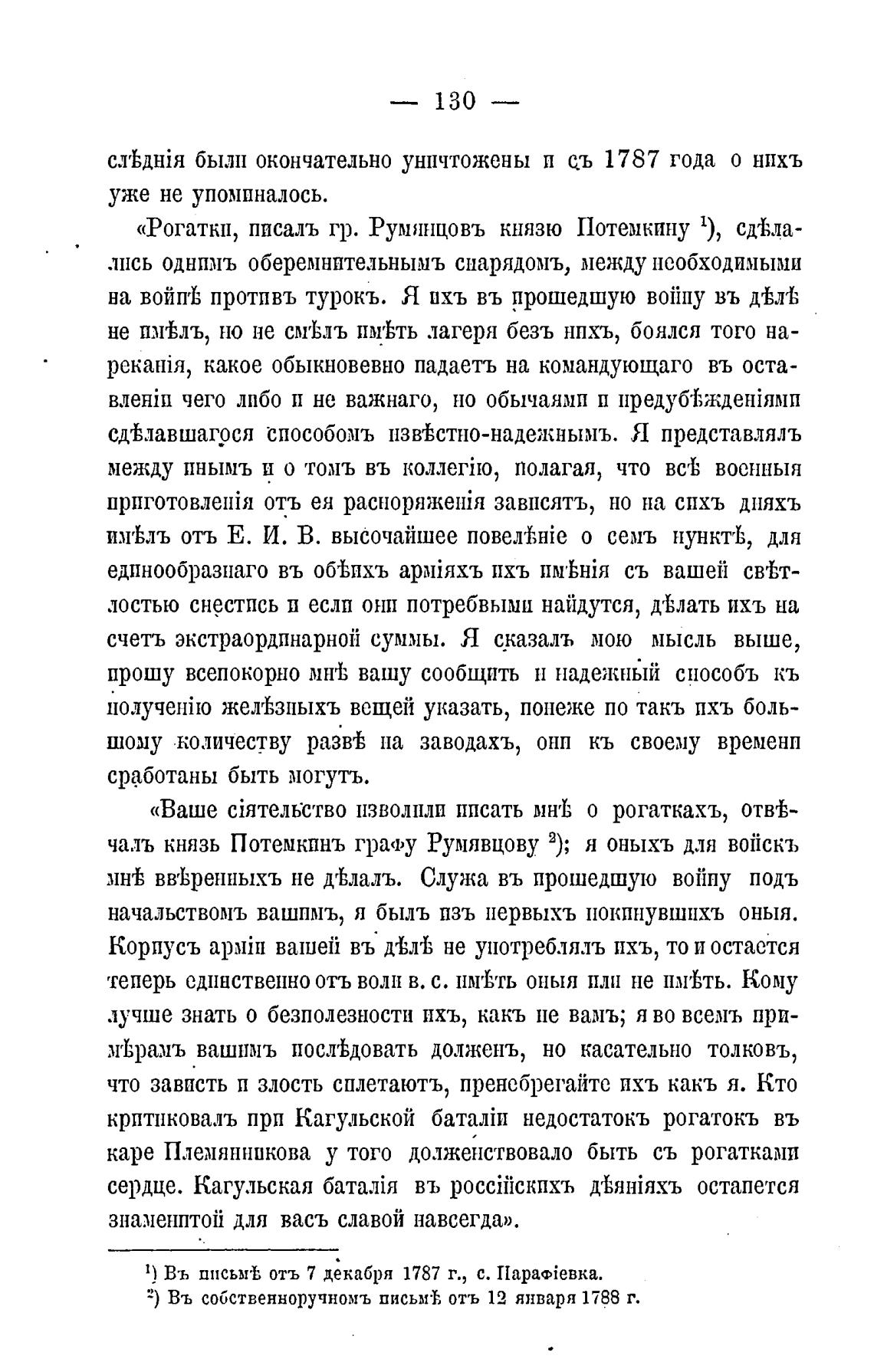 чаль князь Потемкпнъ графу Румявцову 2); я оныхъ для войскъ