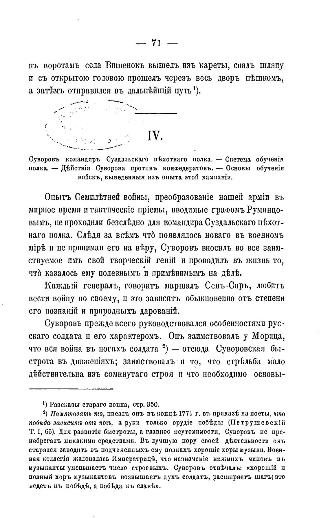 что вся война въ ногахъ солдата 2) — отсюда Суворовская бы-