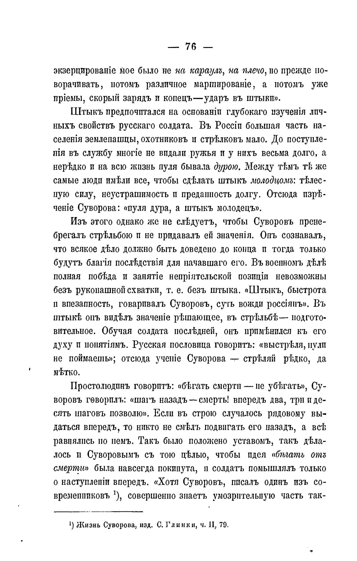 qeHie Суворова: «пуля дура, а штыкъ молодецъ».