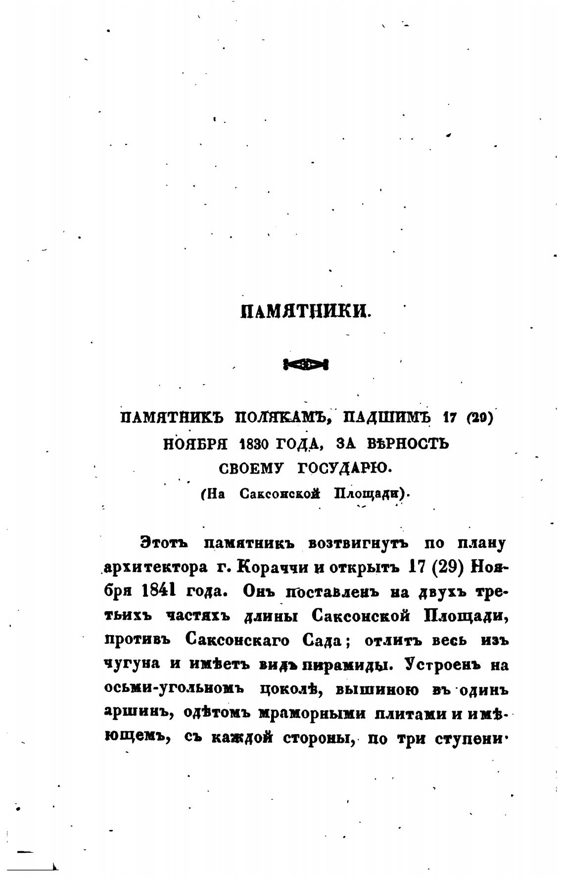 Этотъ памятникъ возтвигнутъ по плану