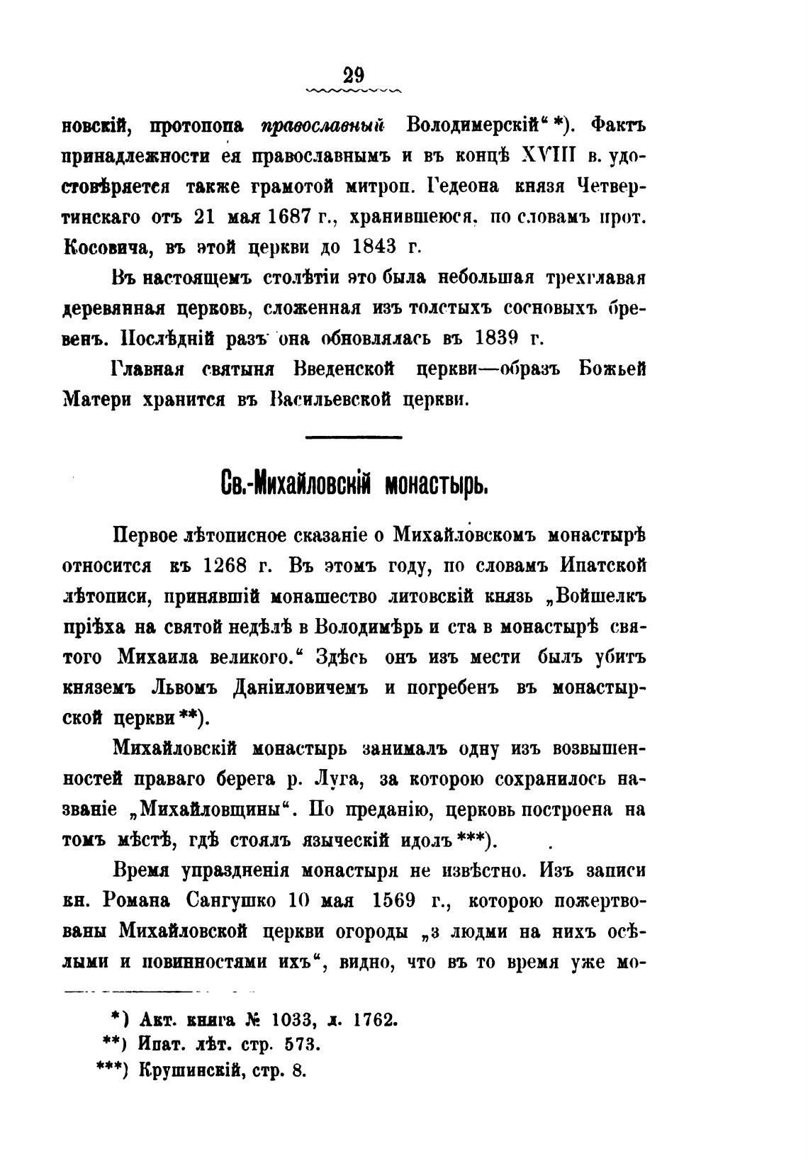 Первое лгЬтописное cka3aHie о Михайловскомъ монастырћ