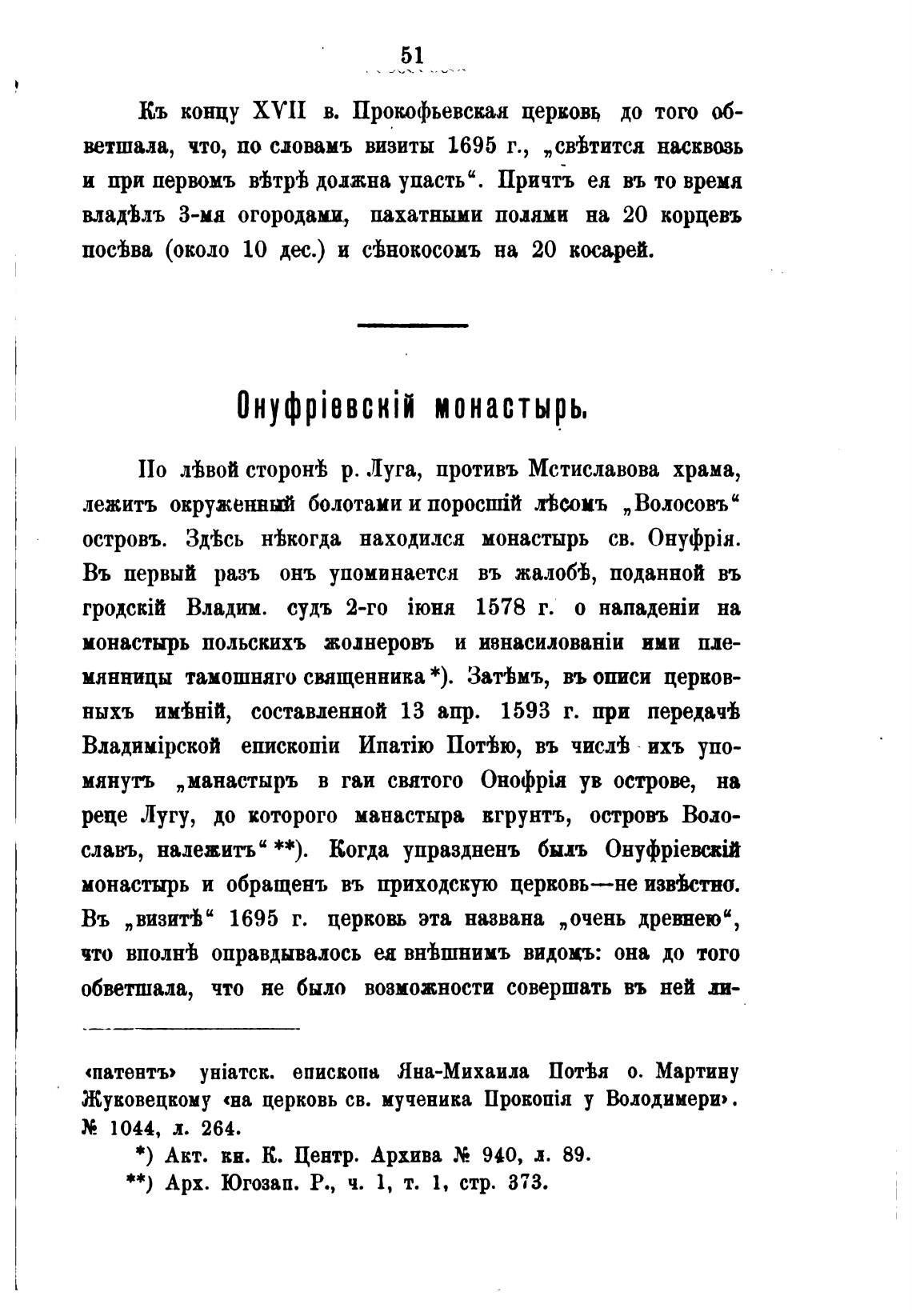 Жуковецкому «на церковь св. мученика Провотјл у Володимери» .