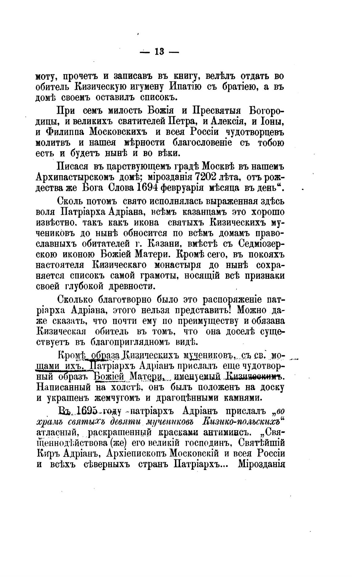 настоятеля Кизическаго монастыря до нын'ђ сохра-