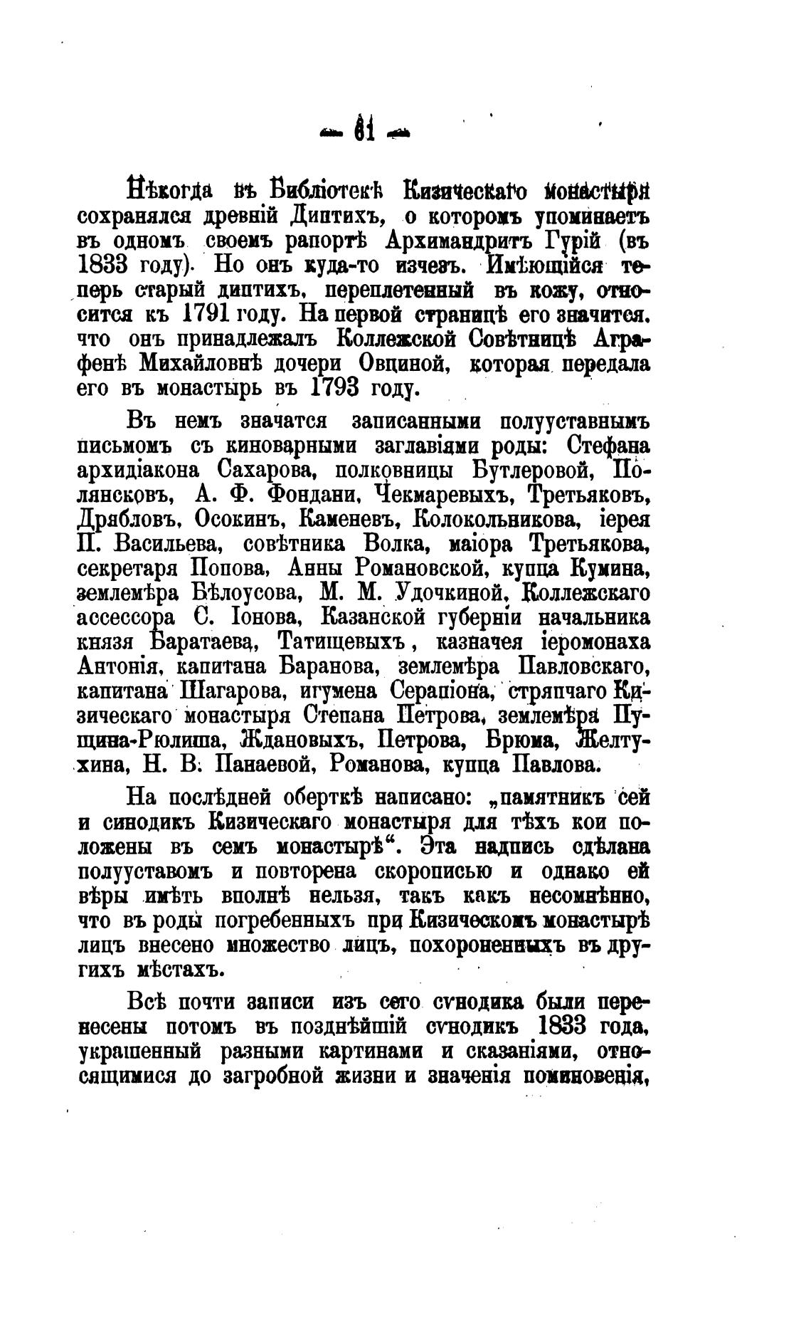 и синодикъ Кизическаго монастыря для ттхъ кои по-