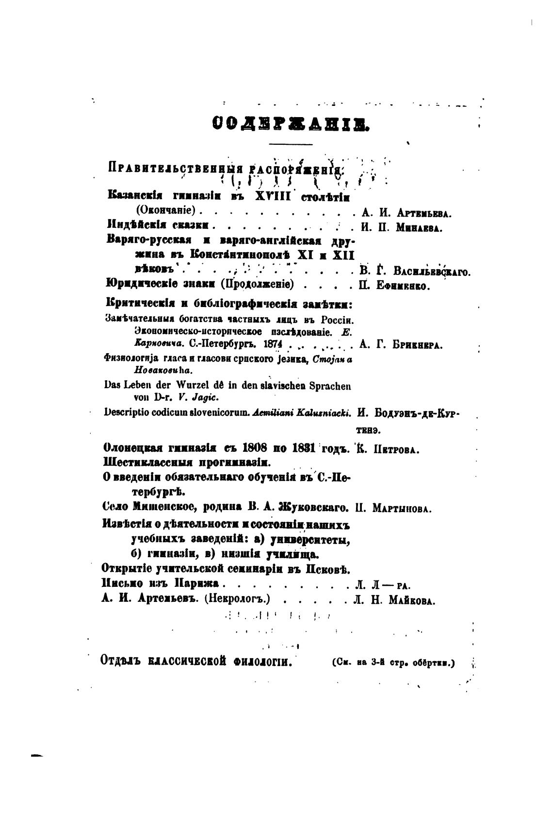 ОТДВЛЪ ИАССИЧЕСВOЙ •ИпОГШ.
