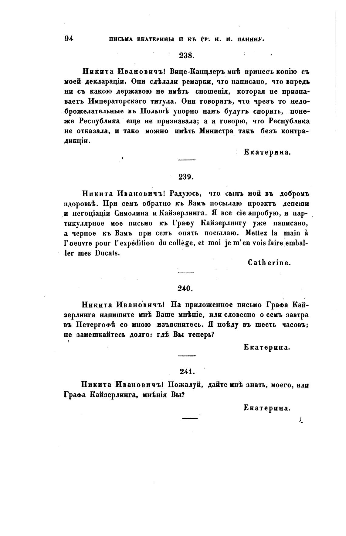 письмА ЕКАТЕРИНЫ П КЬ ГР'. Н. И. ПАНИНУ.