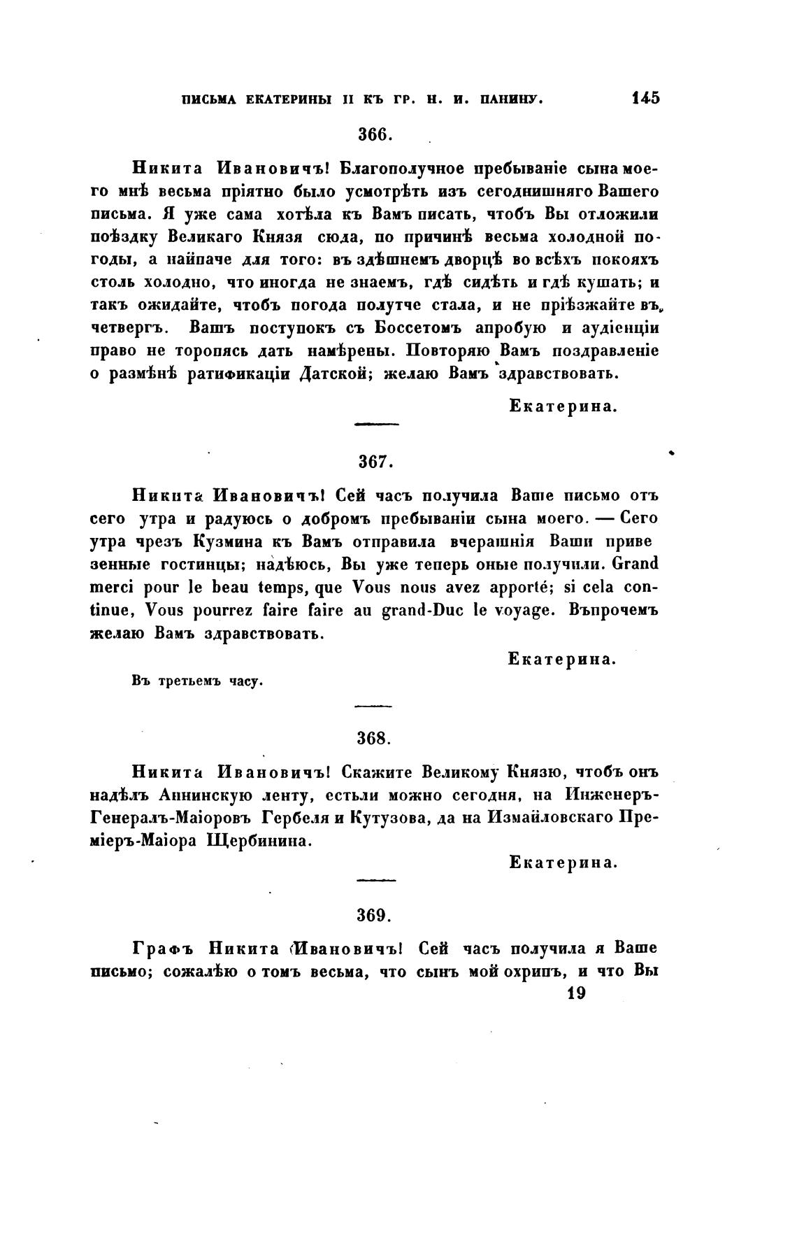 ПИСЬМА ЕКАТЕРИНЫ КЬ ГР. Н. И.