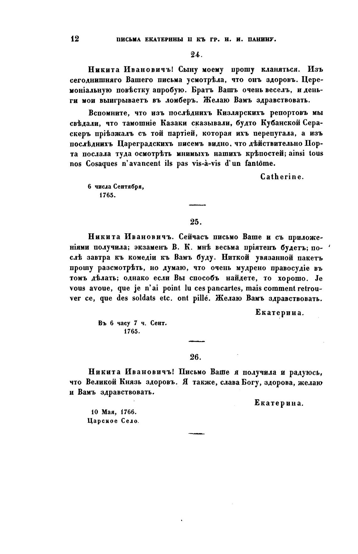 ПИСЬМА ЕКАТЕРИНЫ И КЬ гр. Н. И. ПАНИНУ.