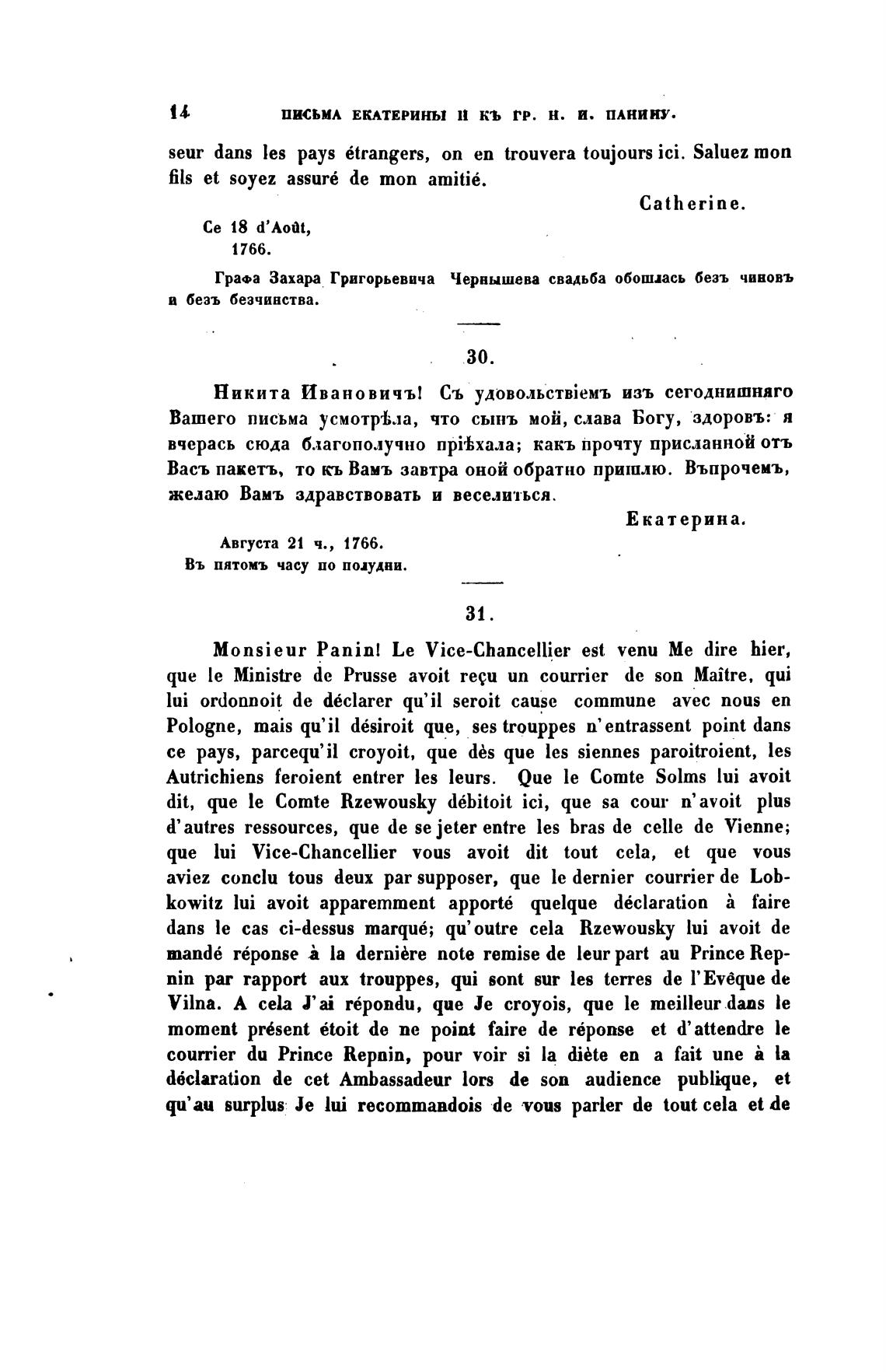 ПИСЬМА ЕКАТЕРИНЫ П КЬ гр. Н. И. ПАНИНУ.