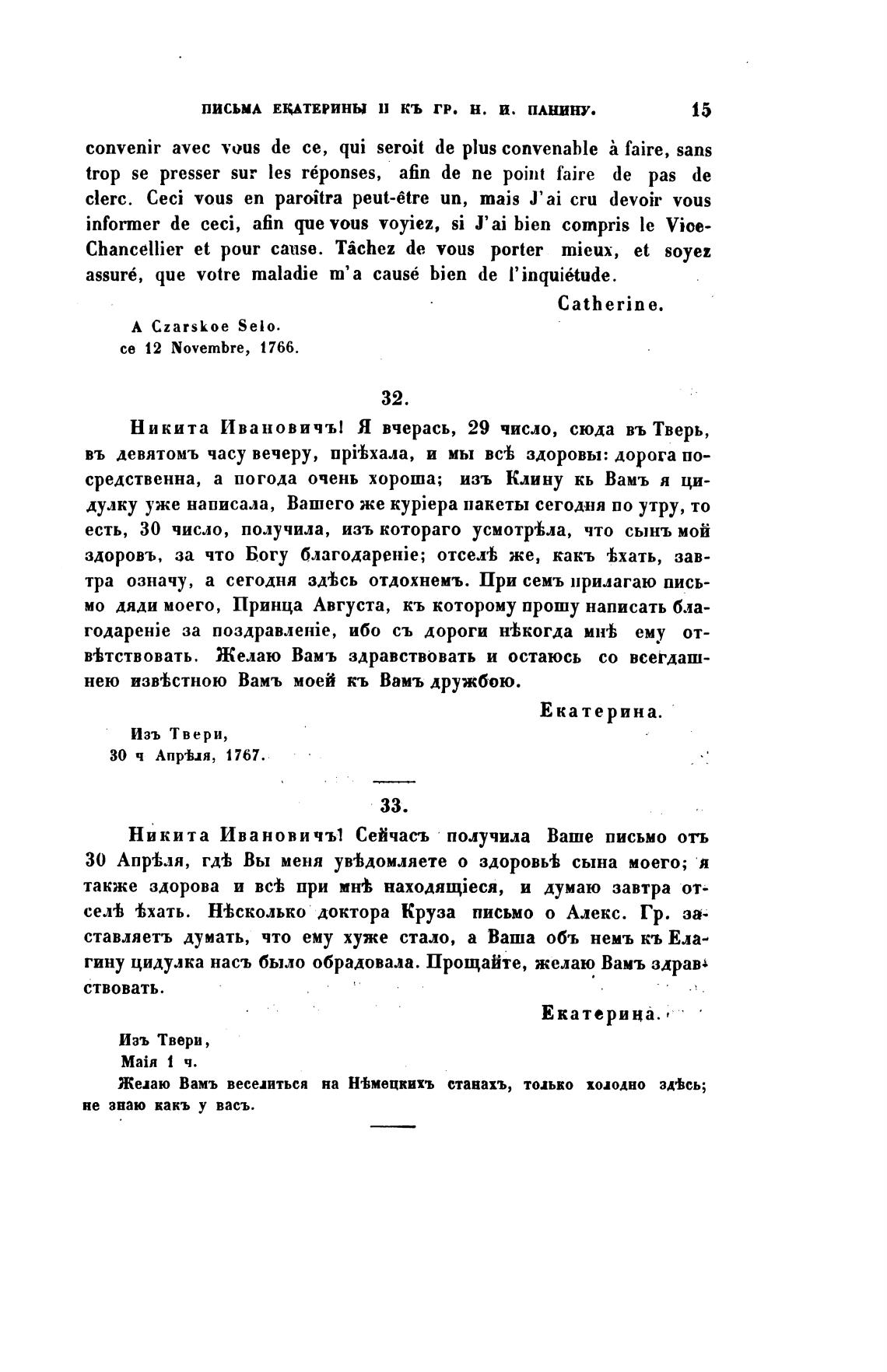ПИСЬМА ЕКАТЕРИНЫ П КЬ гр. Н. И. ПАНИНУ.