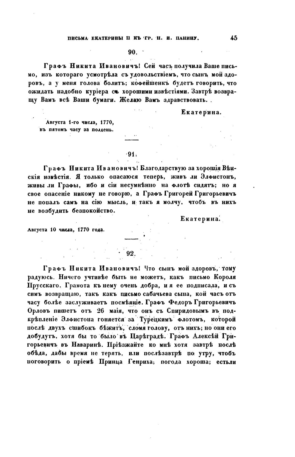 ПИСЬМА ЕКАТЕРИНЫ п НЬ тр. М. И. ПАНИНУ.