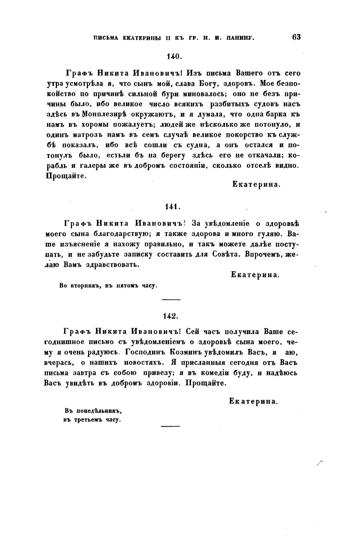 письмА ЕКАТЕРИНЫ 11 КЬ гр. Н. И. ПАНИНУ.