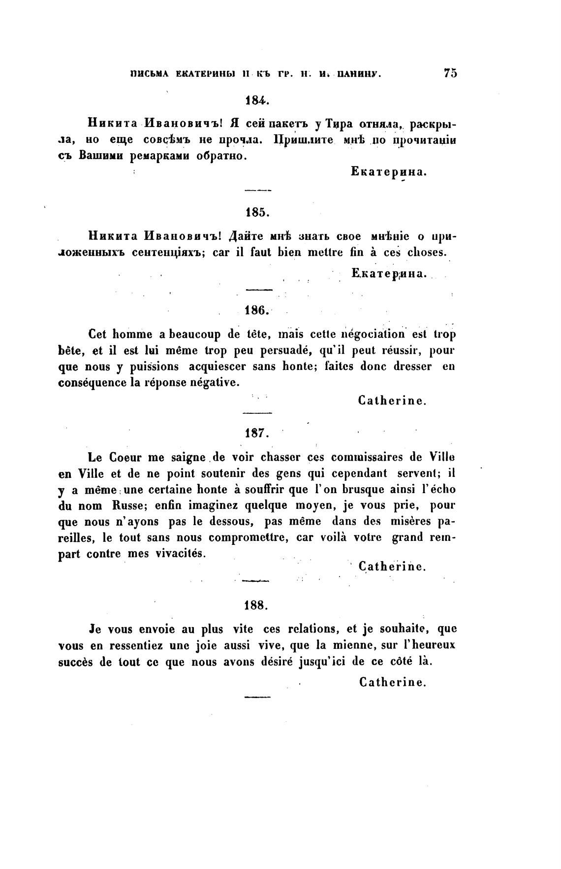 письмА ЕКАТЕРИНЫ КЬ гр. Н. И, ПАНИНУ.