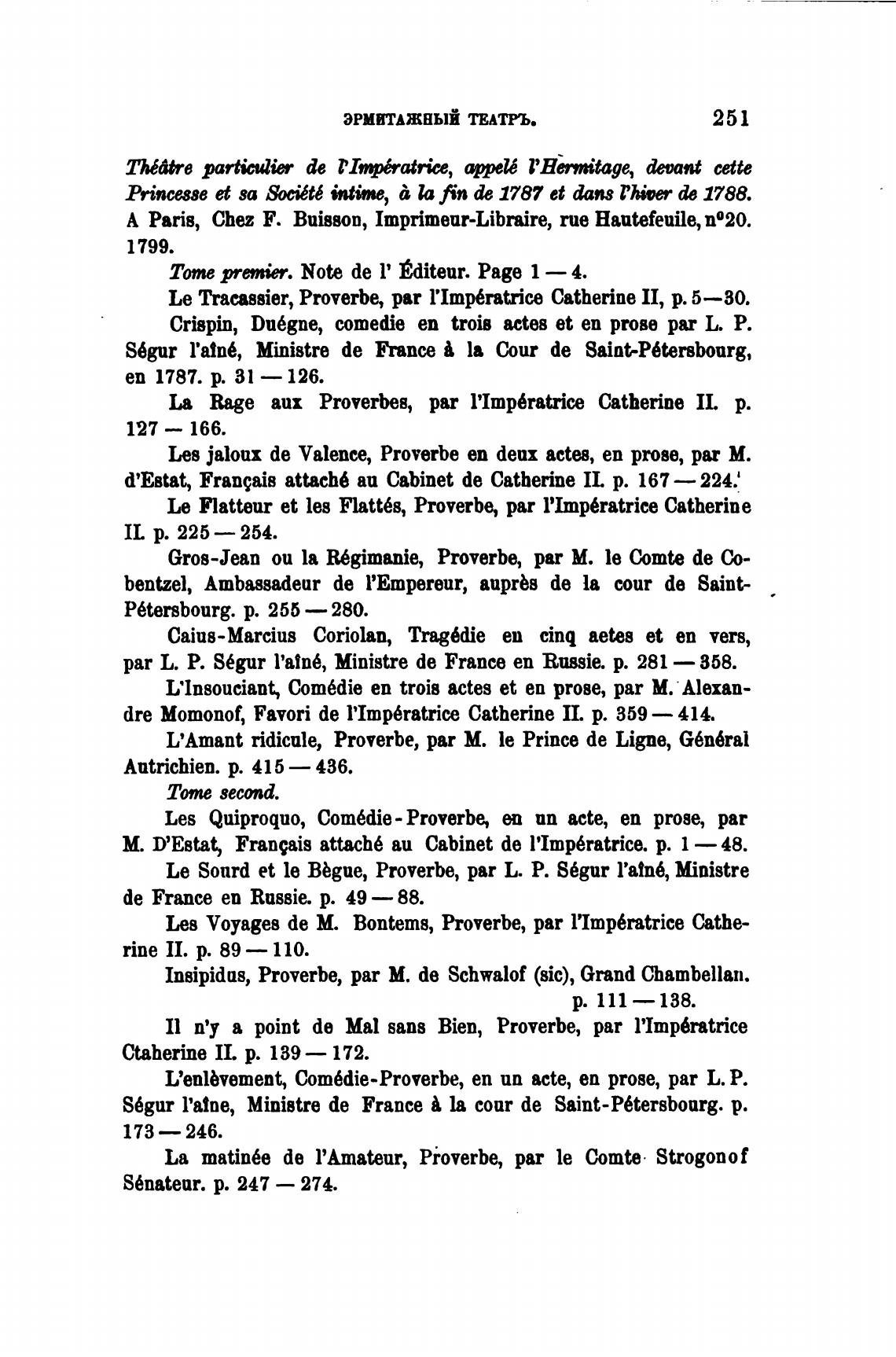 Пе Traassier, Proverbe, ри l'Imp6ratrice Catherine П, р. 5—30.